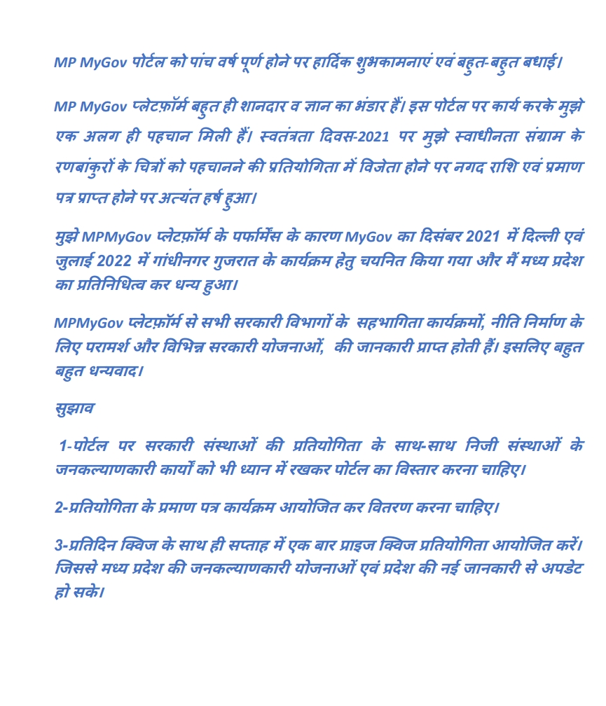 MPMyGov पोर्टल के 5 साल, आप भी साझा करें अपने विचार