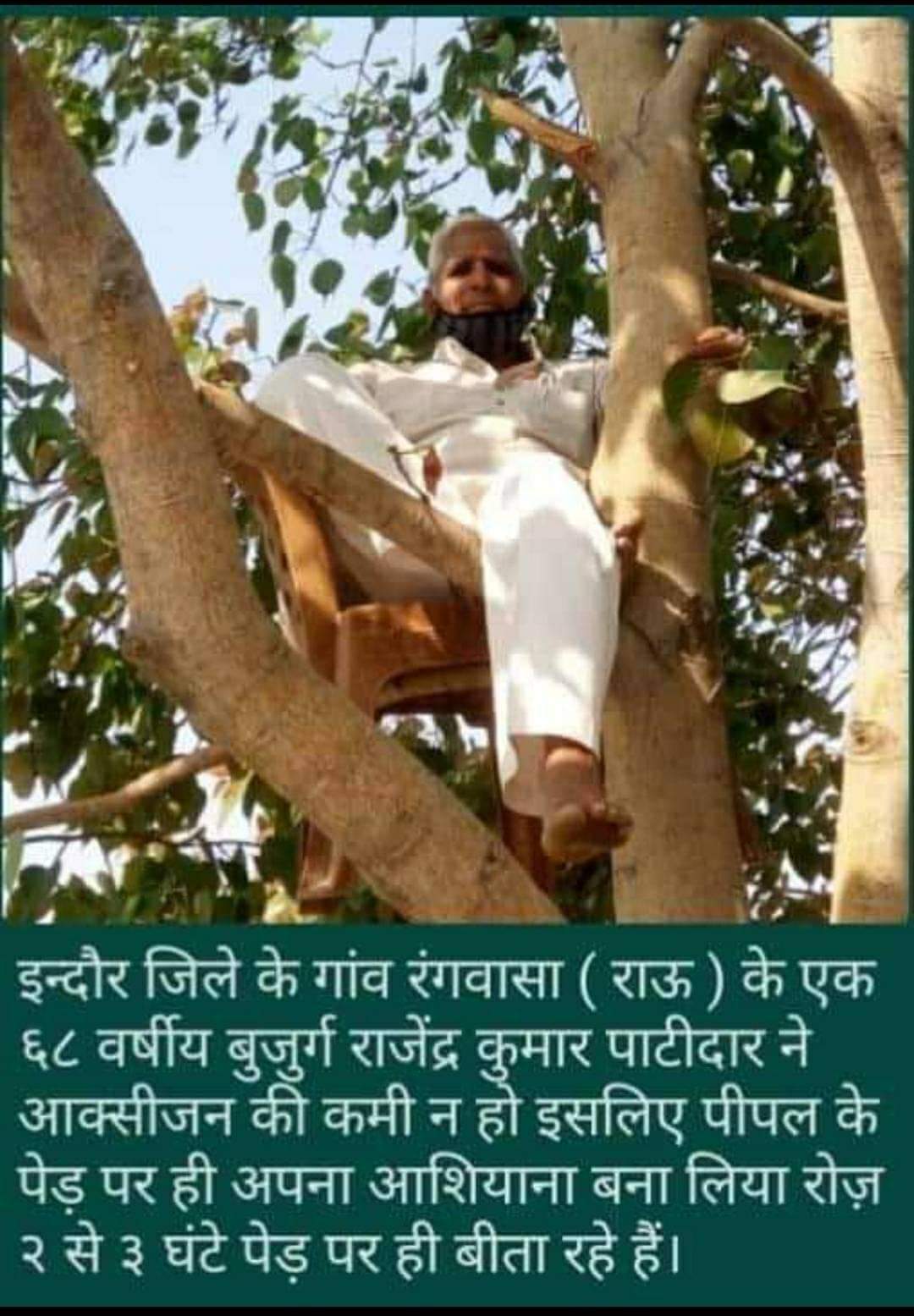 इन्दौर के गांव रंगवासा में एक व्यक्ति ऑक्सीजन के लिये तीन घण्टे पीपल के पेड पर बिताता है।