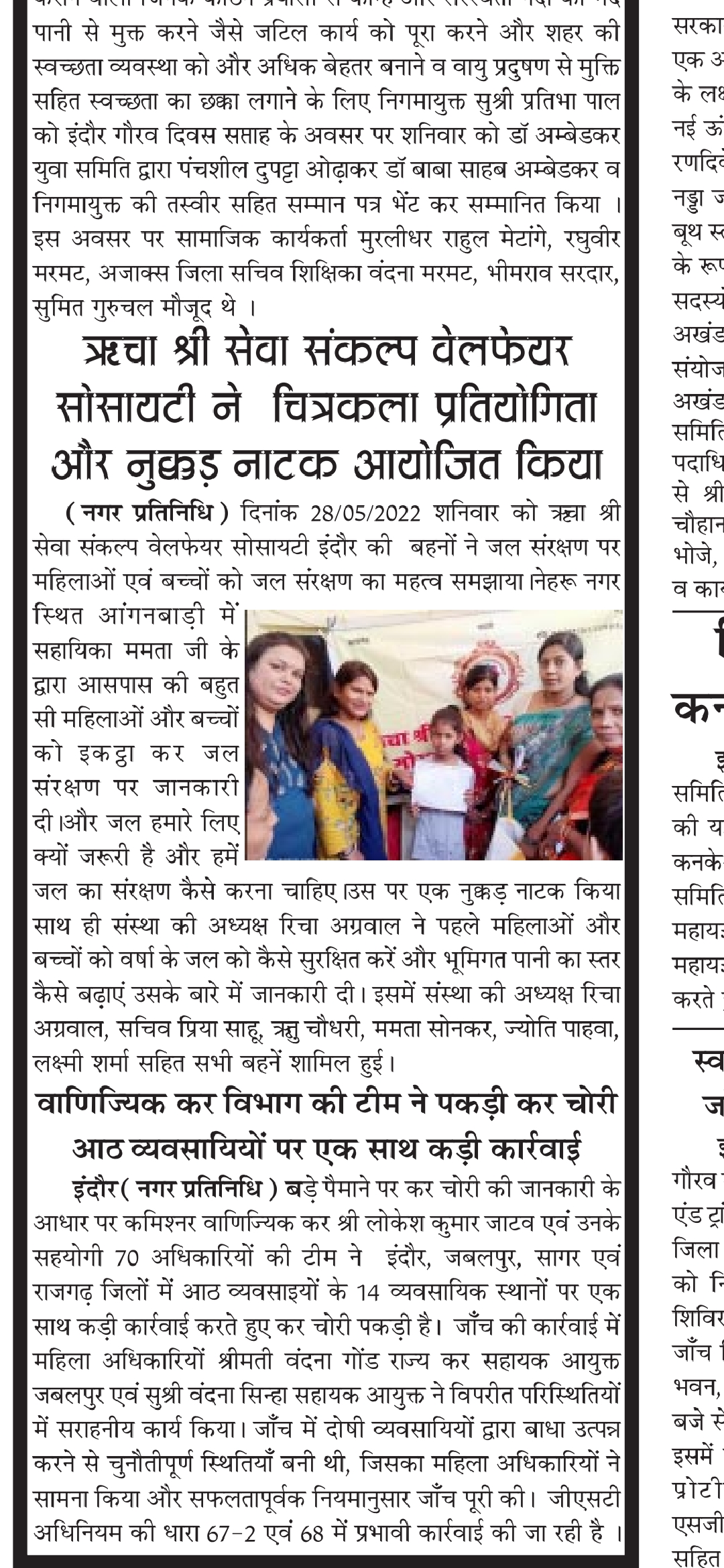 गैर सरकारी संगठनोंस्थानीय निकायों और व्यक्तियों को स्थानीय पंचायतों के साथ गहनता से जल संरक्षण के काम में शामिल किया जाना चाहिए