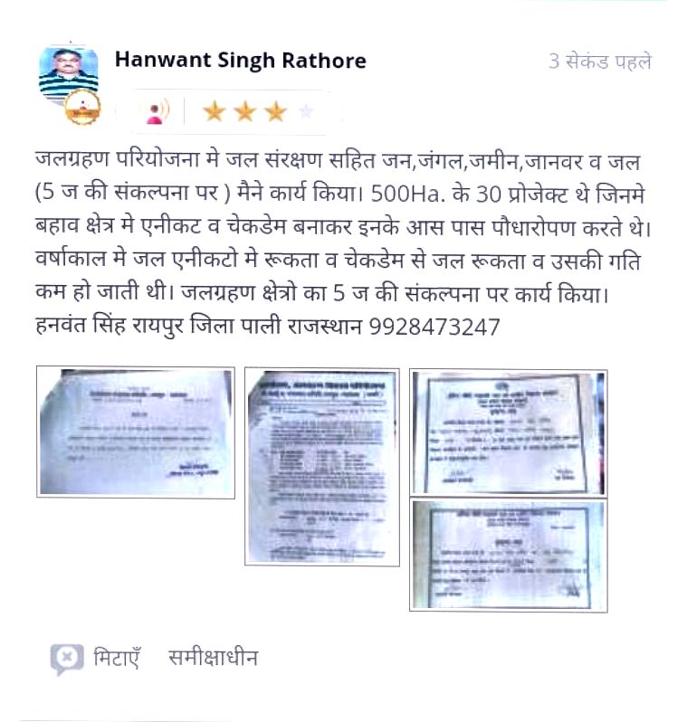 जल संरक्षण में उत्कृष्ट योगदान दे रहे व्यक्ति /संस्थाएं साझा ...