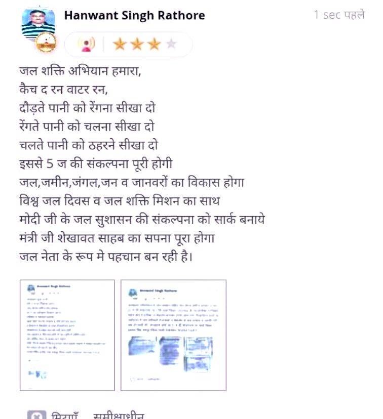 जल संरक्षण में उत्कृष्ट योगदान दे रहे व्यक्ति /संस्थाएं साझा ...
