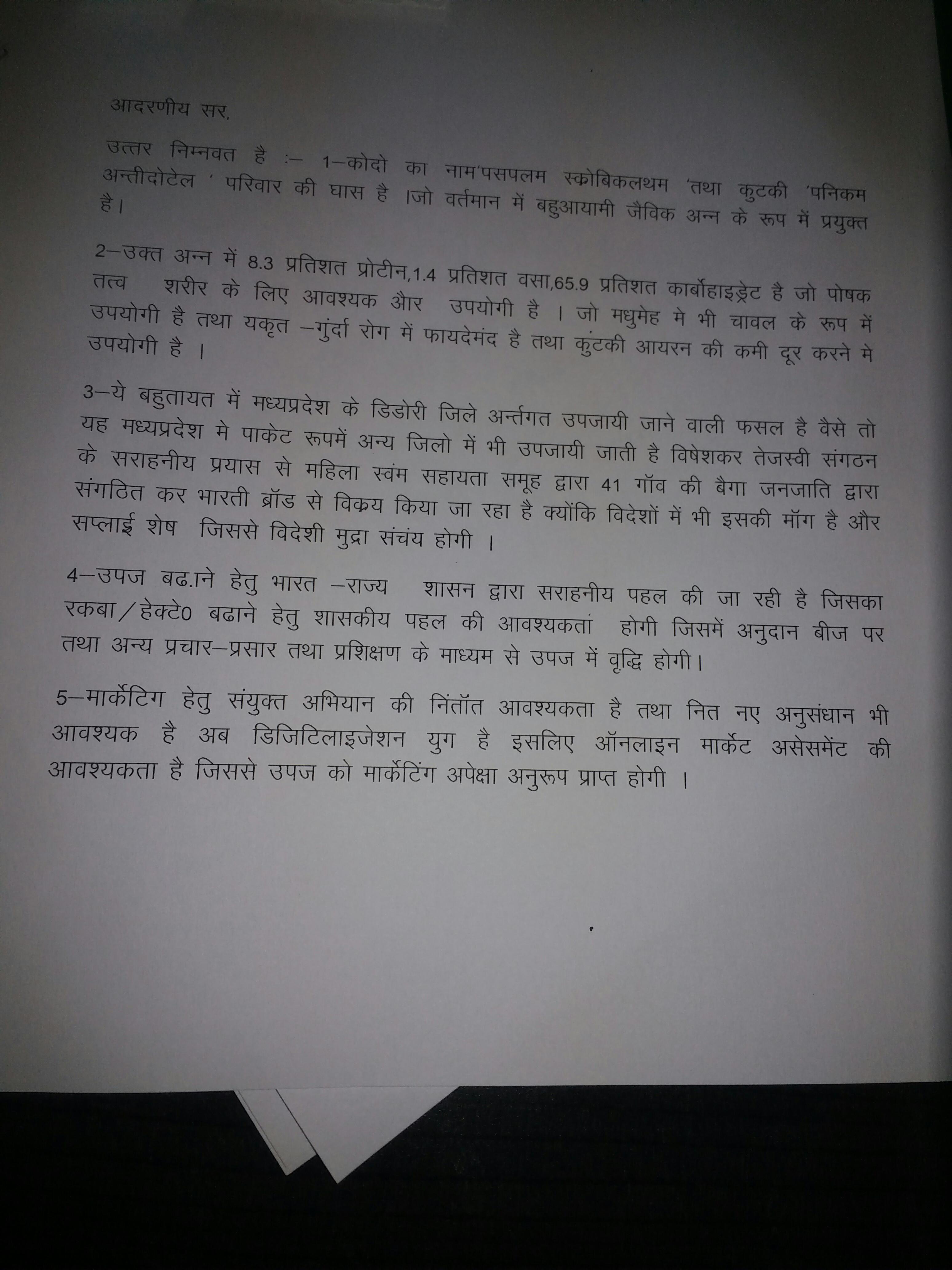 कोदो-कुटकी प्रतियोगिता के प्रश्न-
