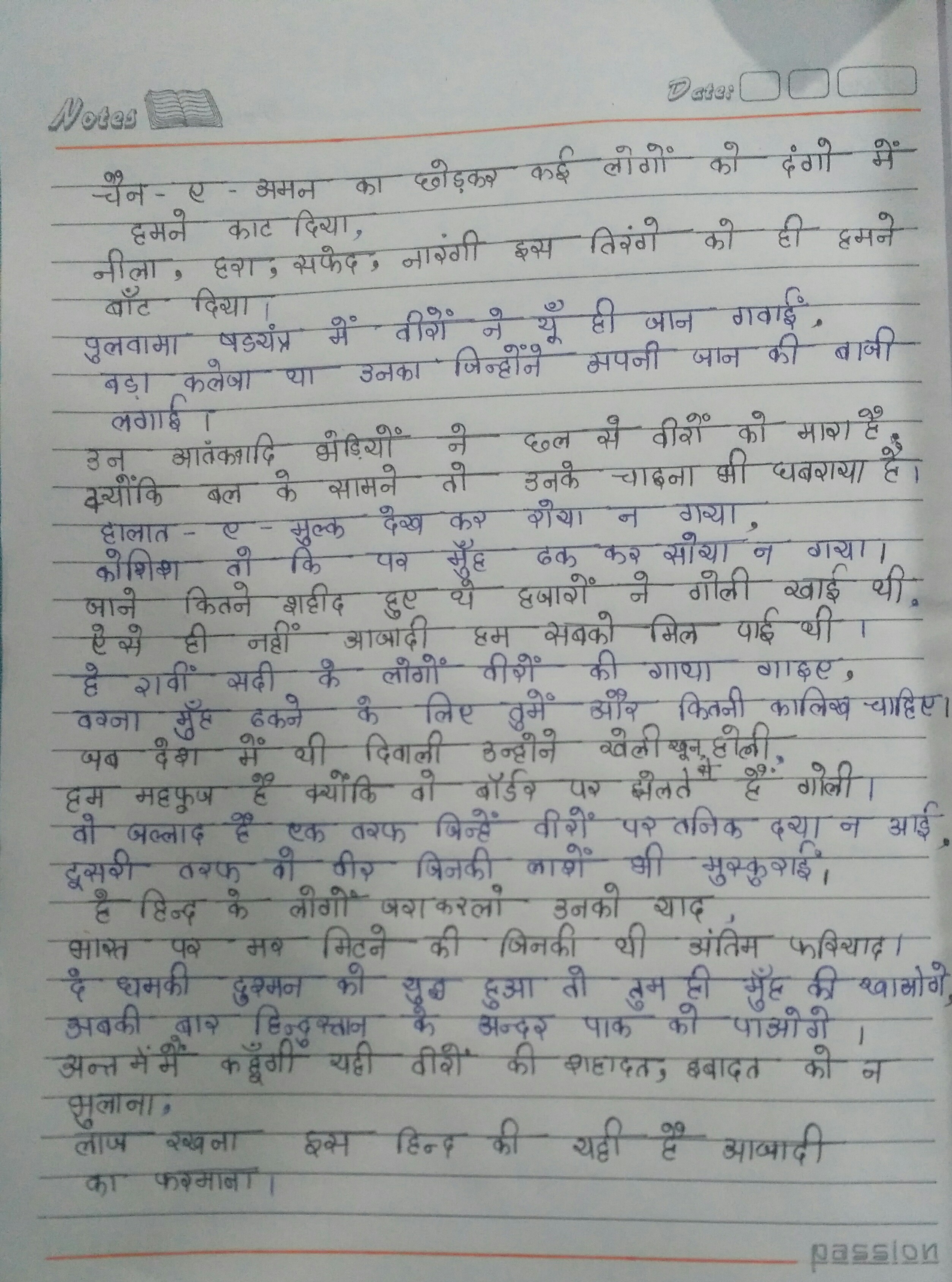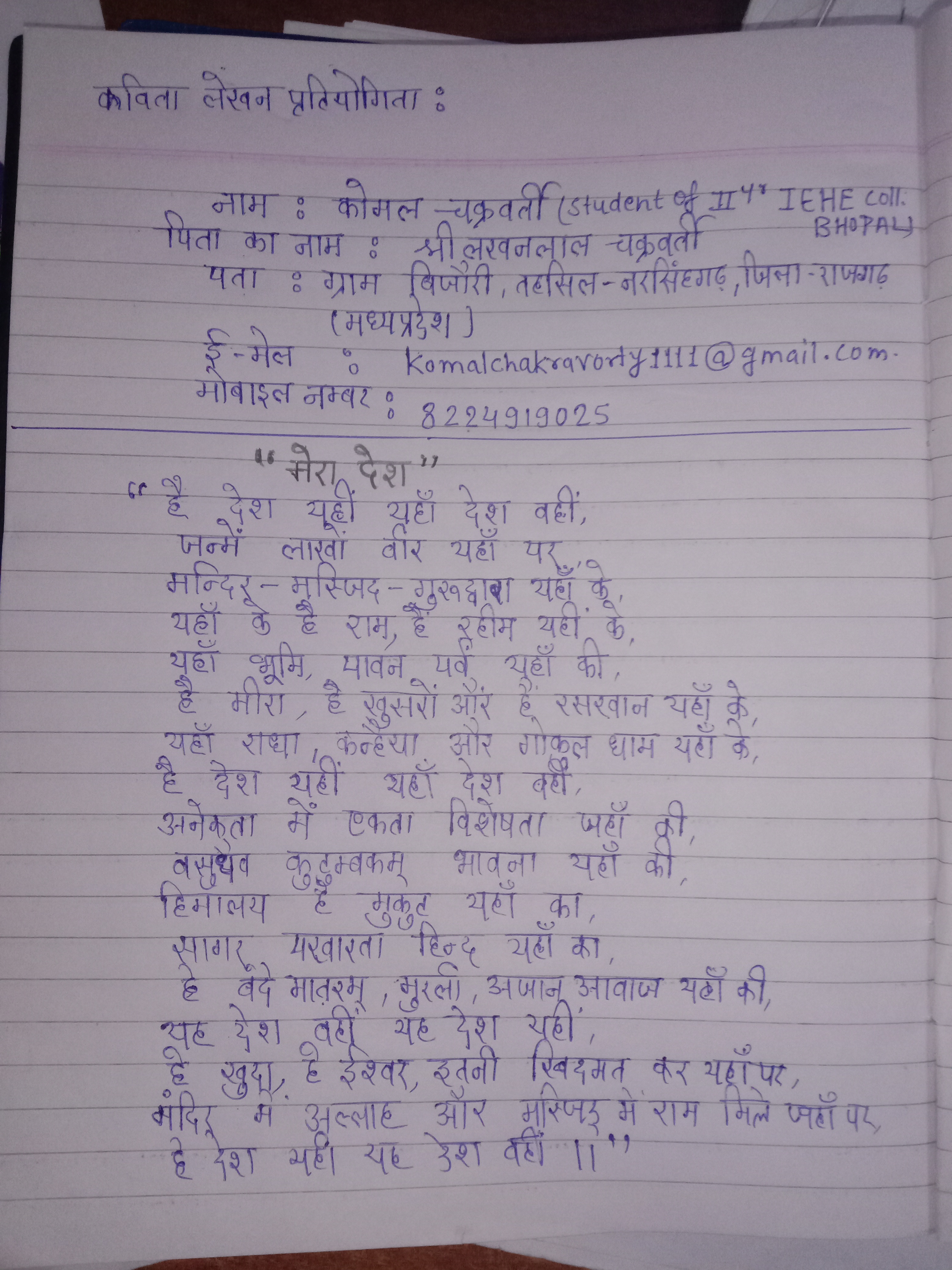 देशभक्ति पूर्ण मौलिक कविता लेखन प्रतियोगिता