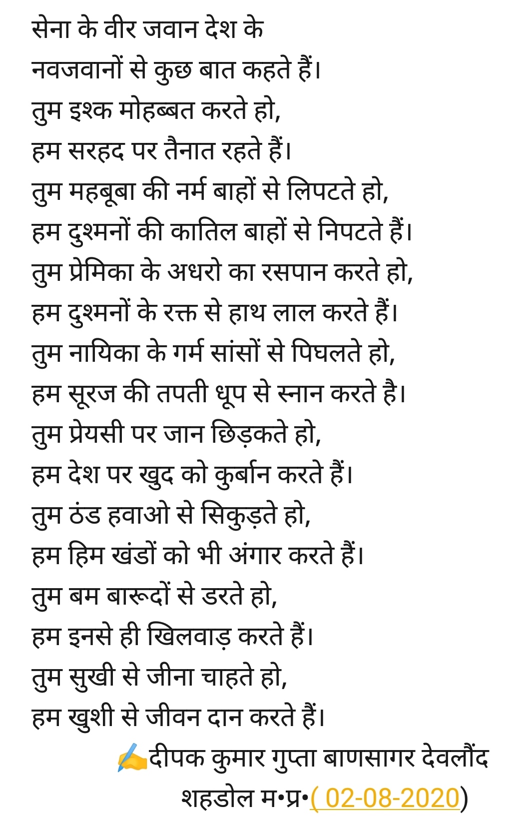 देश के वीरो के सम्मान में कुछ पंक्तियाँ लिखी है.