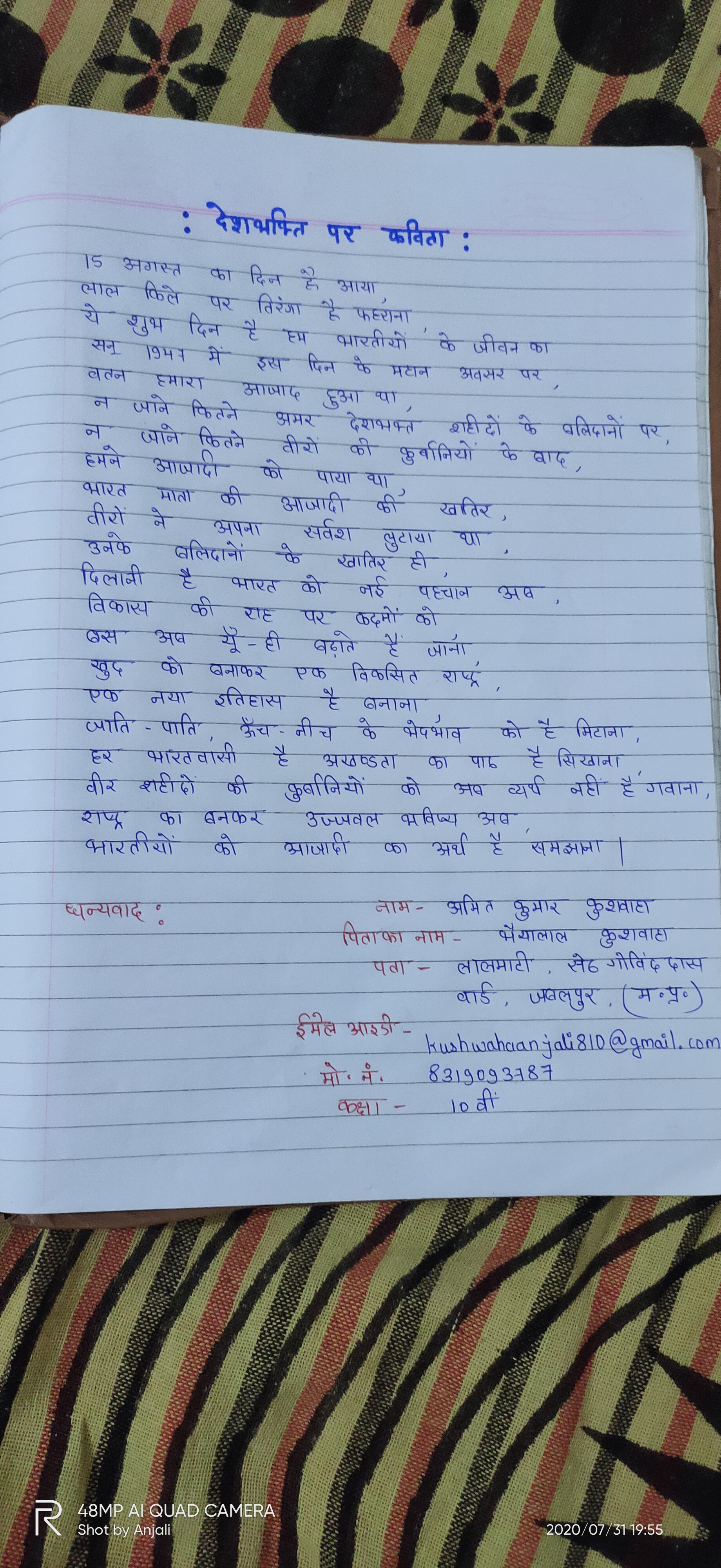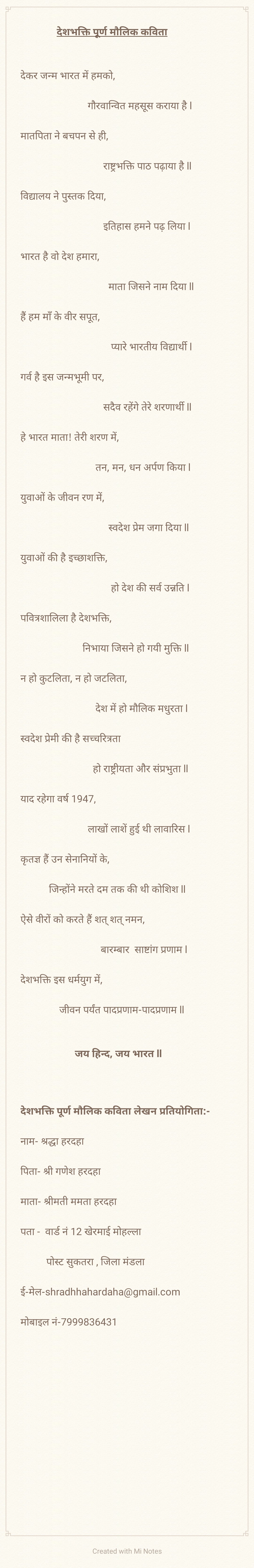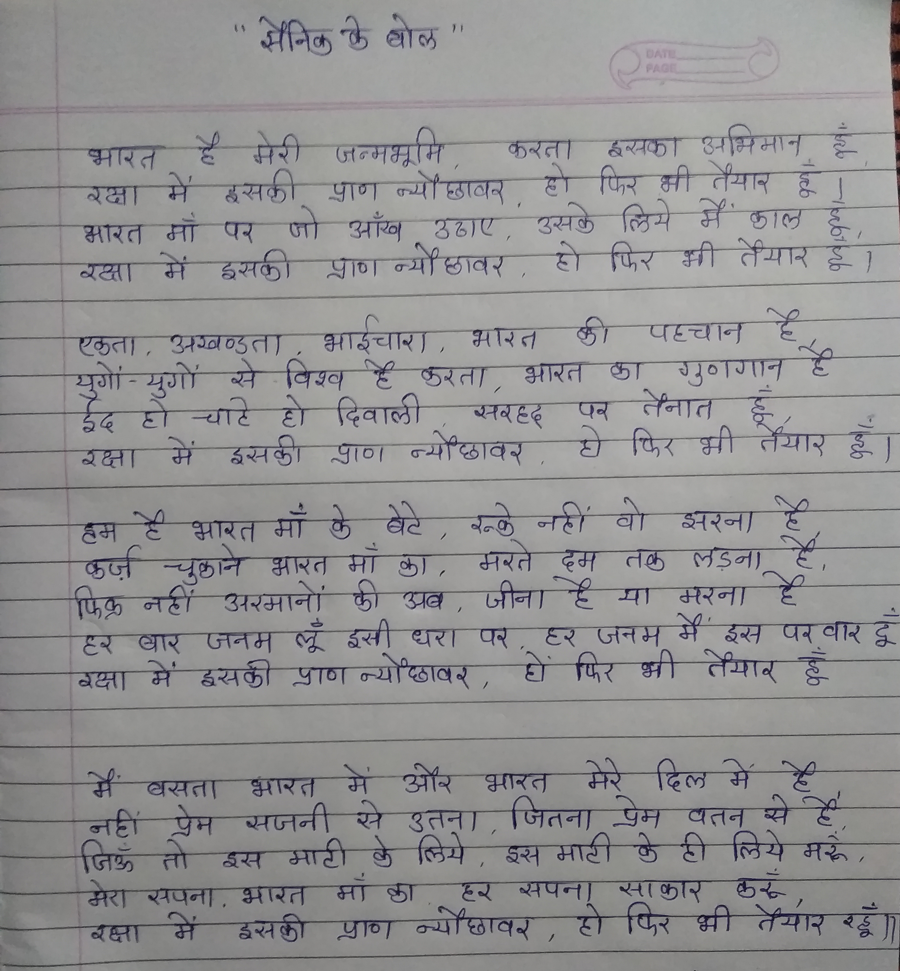 देशभक्ति पूर्ण मौलिक कविता लेखन प्रतियोगिता