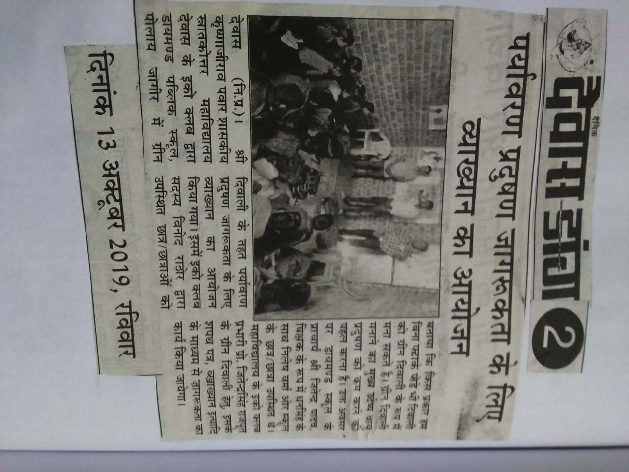में प्रो जितेंद्र सिंह राजपूत के पी कॉलेज देवास का इको क्लब प्रभारी सहु,मेरे प्रयास ग्रीन दीवाली के लिए निम्न थे और मेरा इडाजो था वो आप यु tube की लिंक