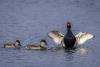 Red-crested Pochard- Netta Rufina - Local Name: Lal Chonch: The red-crested pochard is a medium-sized bird and the males are slightly larger than the females. The male had a round reddish-chestnut head, pinkish-reddish bill, and black breast. The flanks are white and the back is shades of brown. The tail is black. The female bird is a pale brown with darker back and crown. The face is whitish.