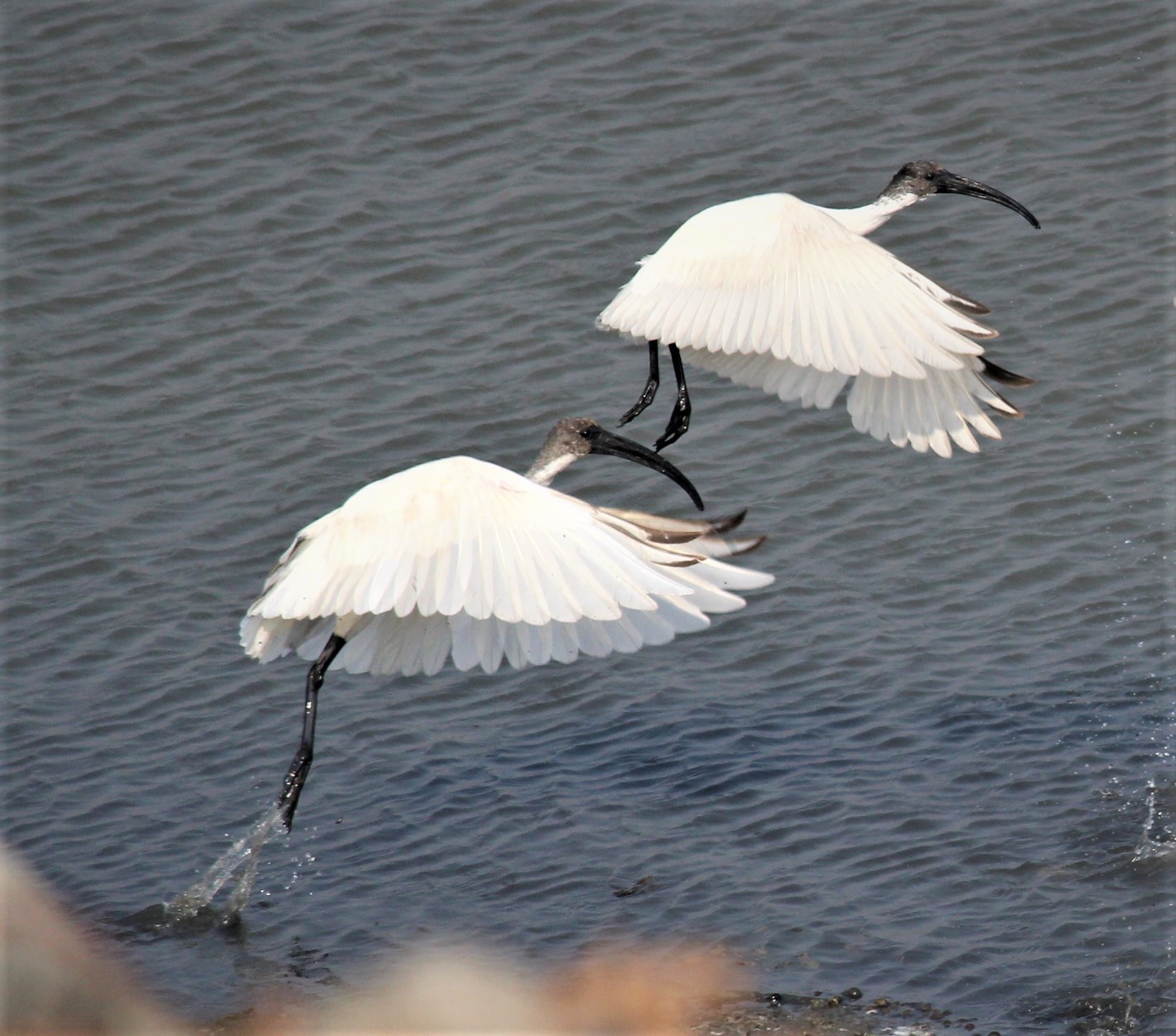 This image is Ibis birds captured at Kaliasot Dam Bhopal its scientifc name is Threskiornithinae, ibises is long-legged wading birds the all have long, down-curved bills, and usually feed as a group, probing mud for food items