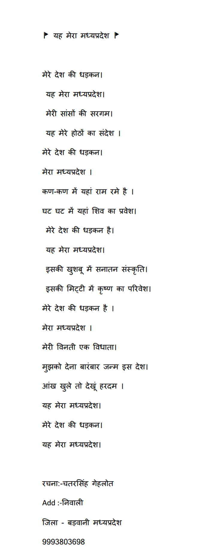 मेरा मध्यप्रदेश - कविता प्रतियोगिता