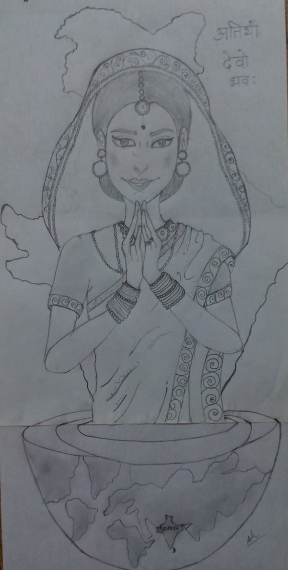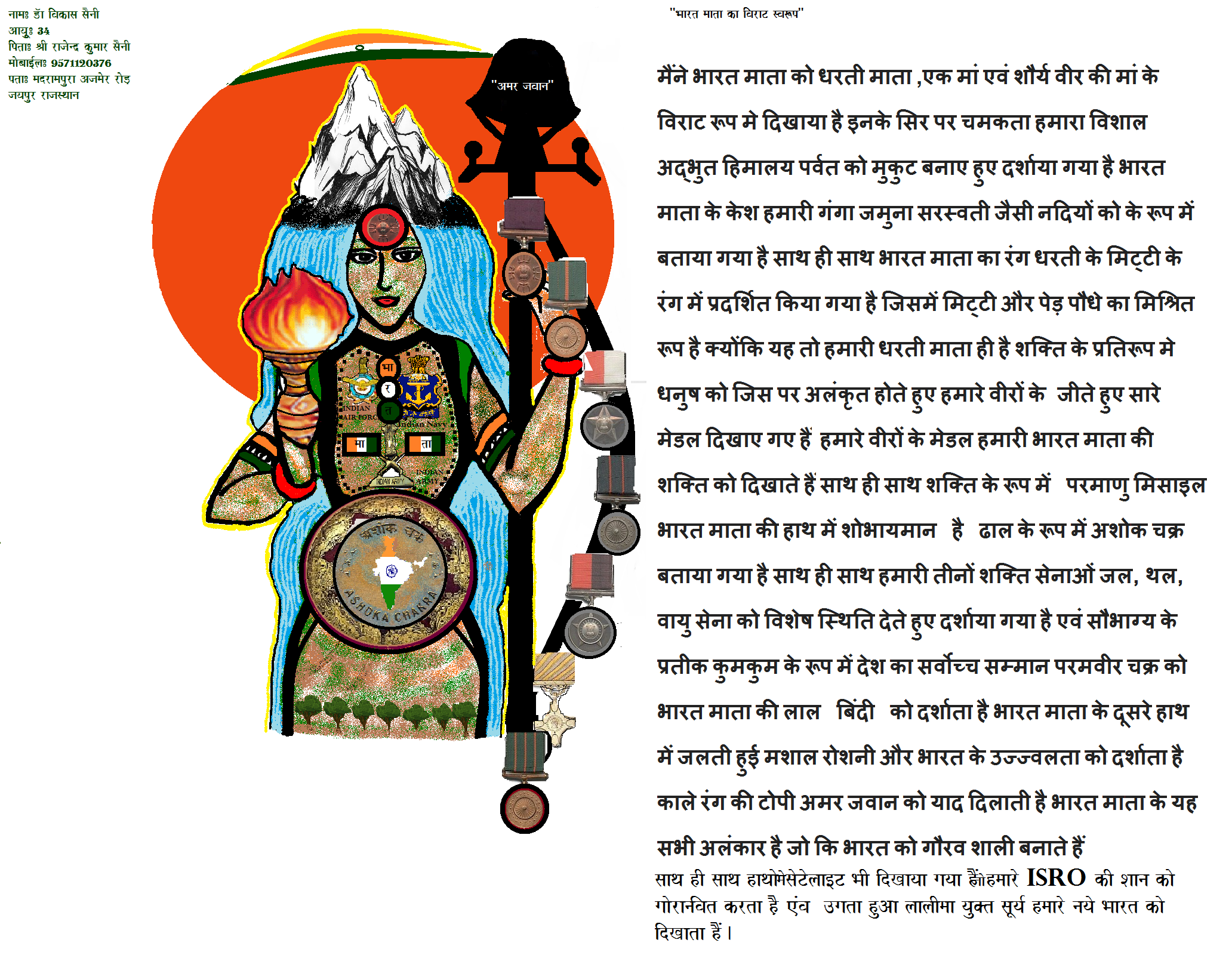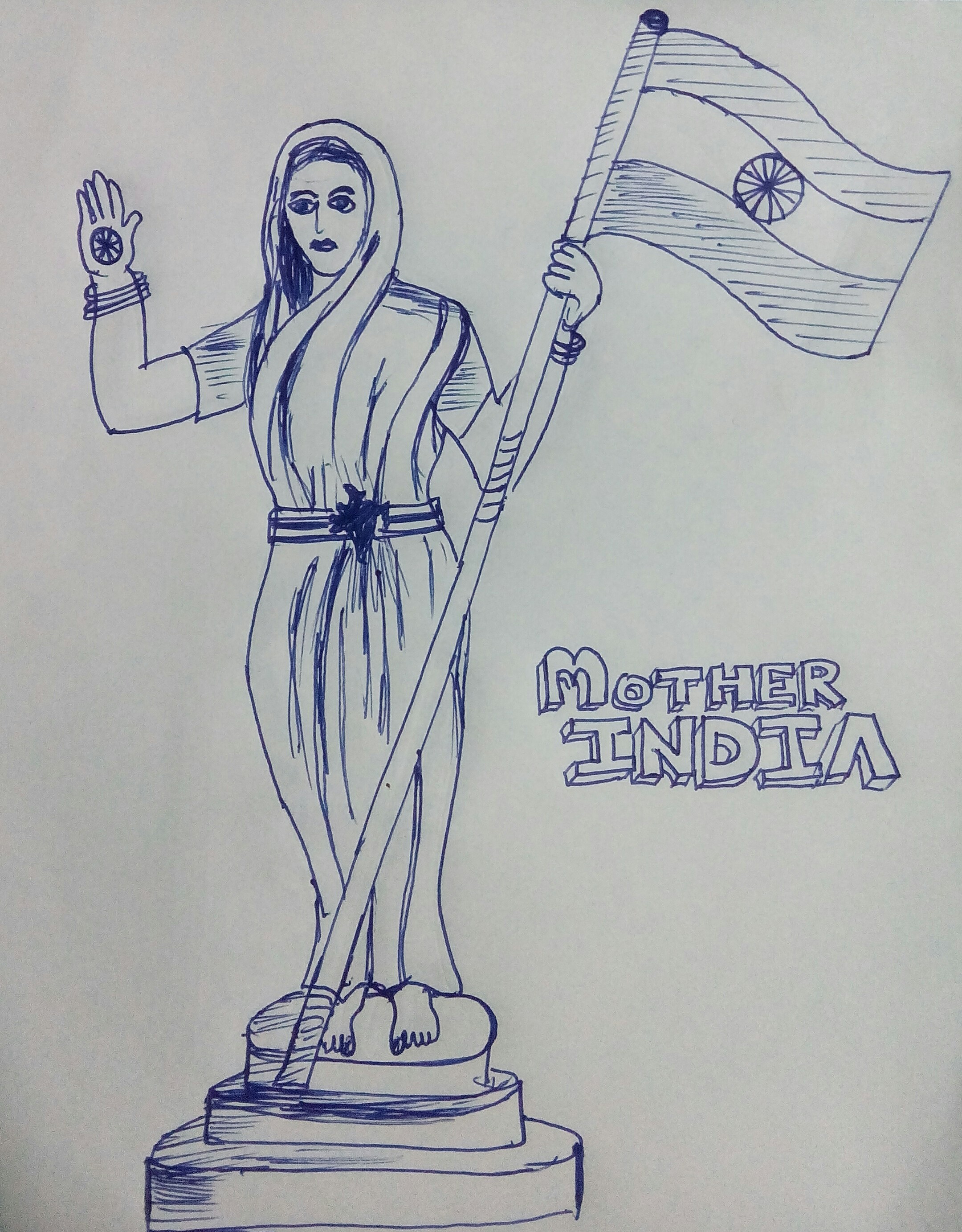 In my submission Bharat Mata raise her hand bearing ashok chakra to bless the Indians and holding our national flag on the other hand.