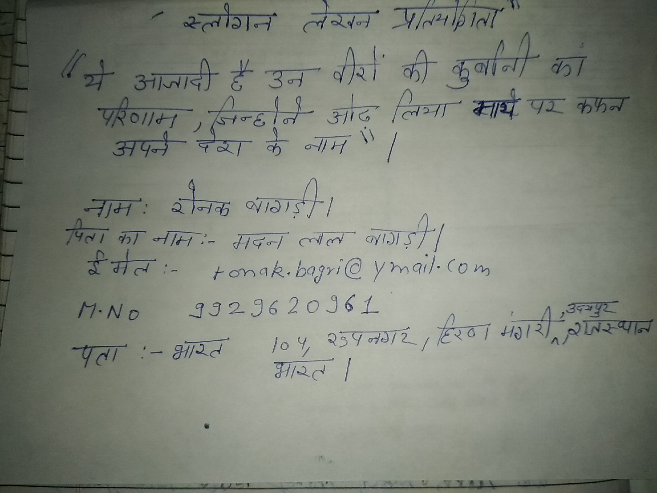 स्वाधीनता पर केन्द्रित प्रेरक स्लोगन लेखन प्रतियोगिता
