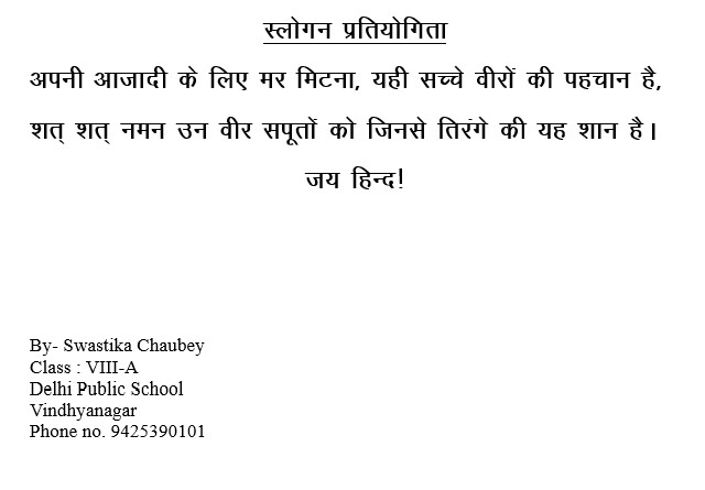 स्वाधीनता पर केन्द्रित प्रेरक स्लोगन लेखन प्रतियोगिता
