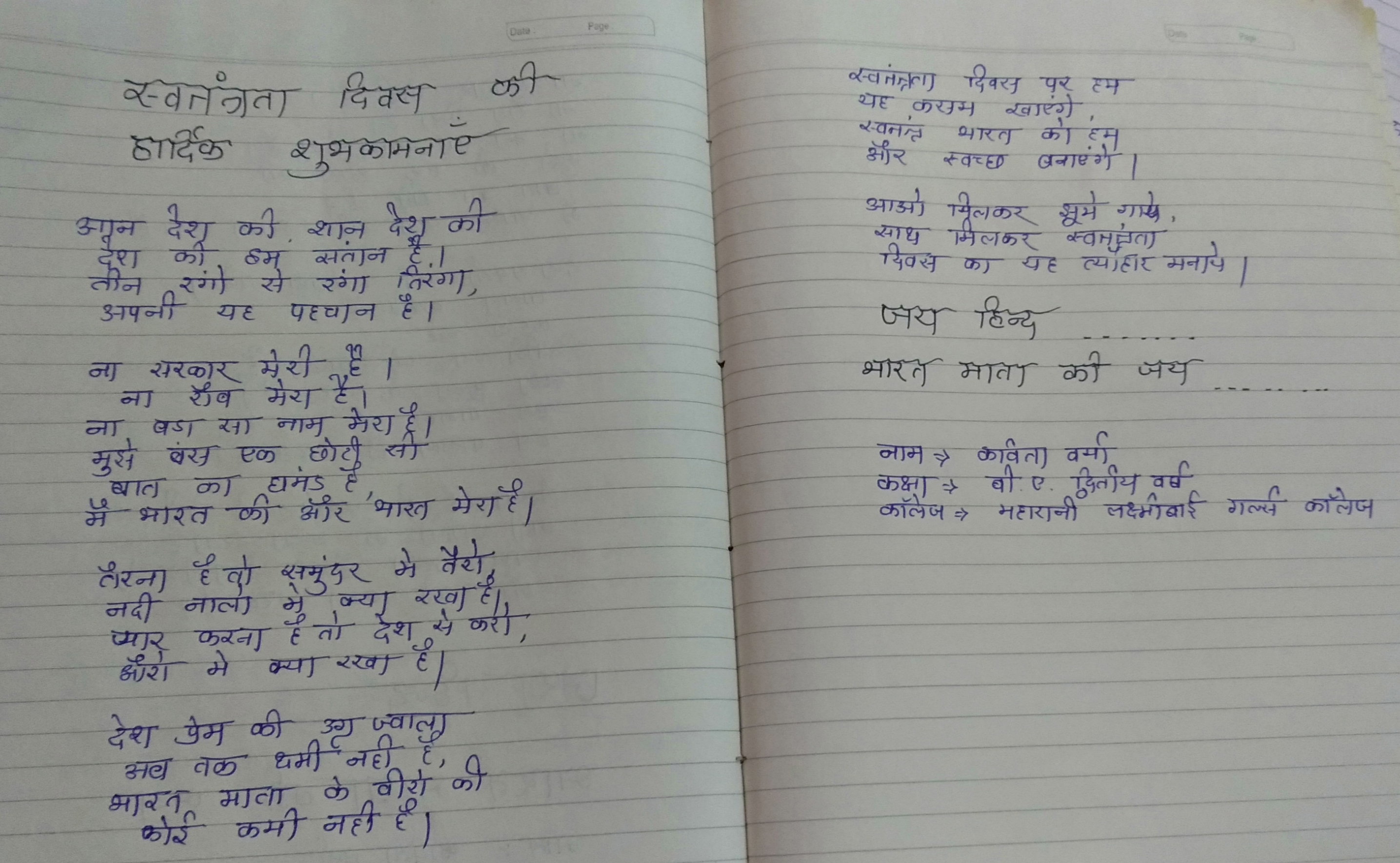 स्वाधीनता पर केन्द्रित प्रेरक स्लोगन लेखन प्रतियोगिता
