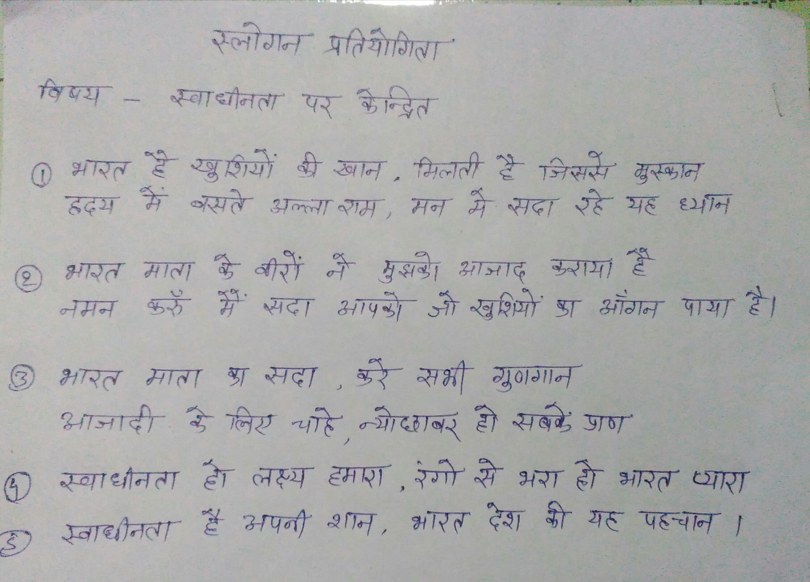 स्वाधीनता पर केन्द्रित प्रेरक स्लोगन लेखन प्रतियोगिता