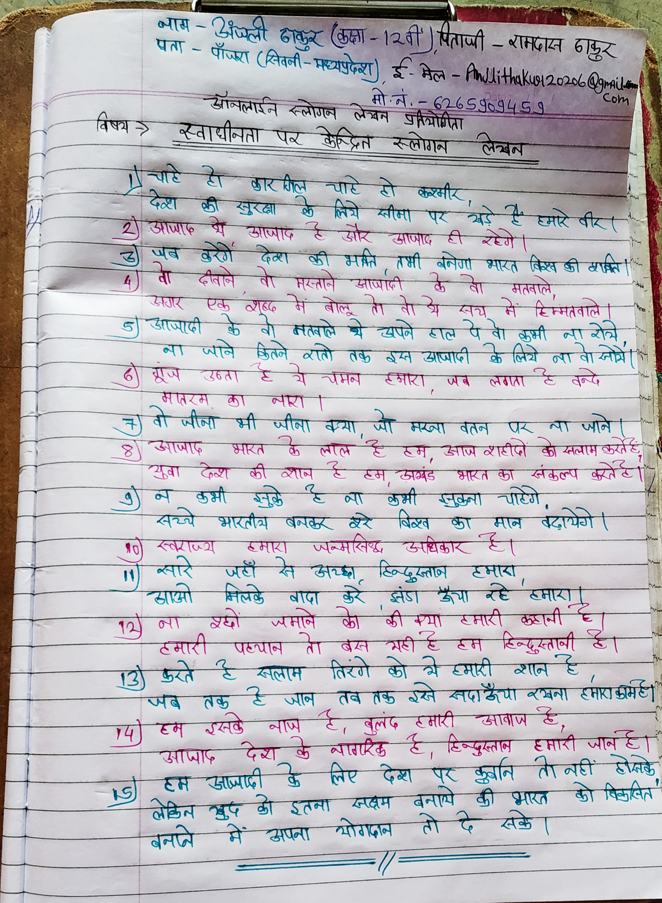 स्वाधीनता पर केन्द्रित प्रेरक स्लोगन लेखन प्रतियोगिता
