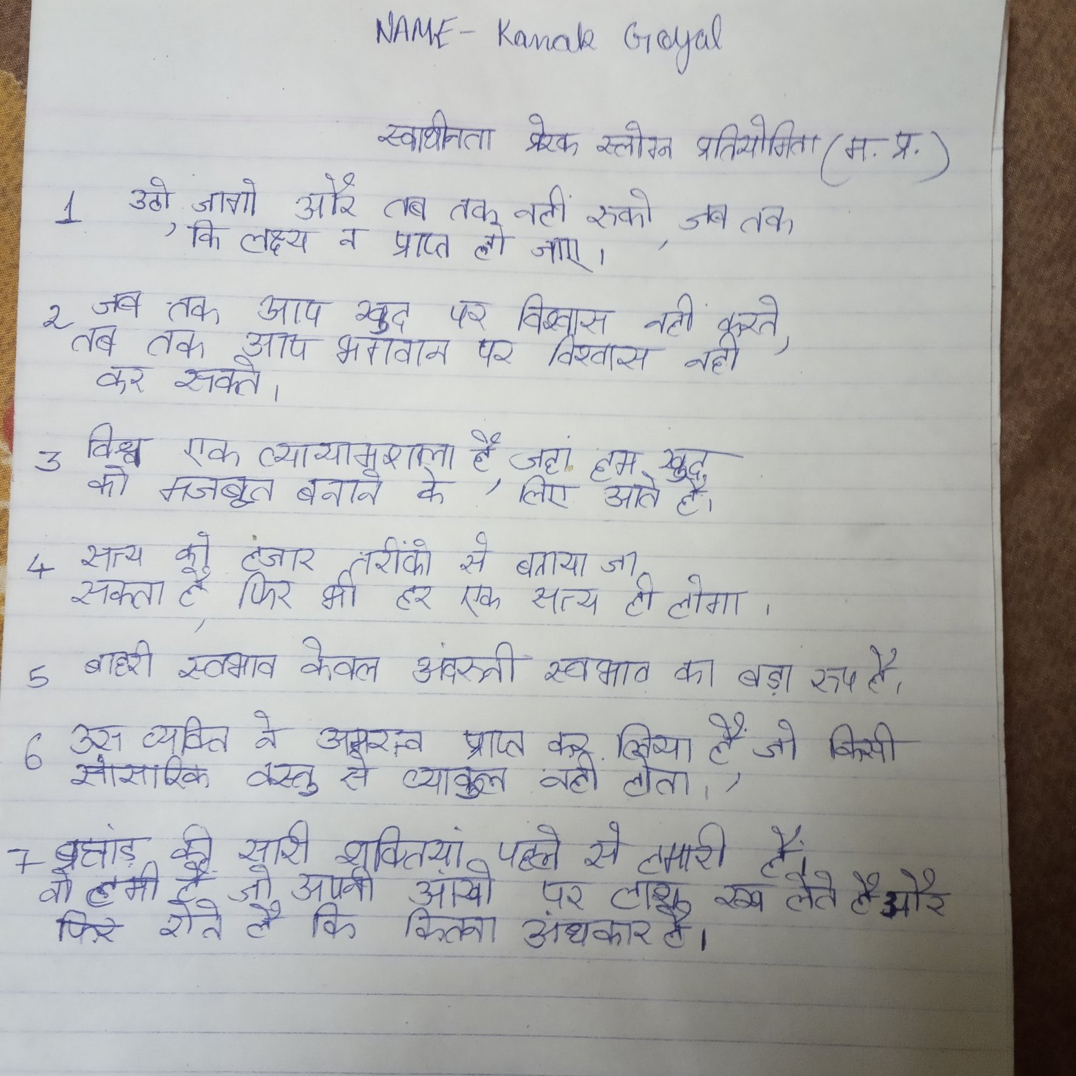 Vandana porwal स्वाधीनता पर केन्द्रित प्रेरक स्लोगन