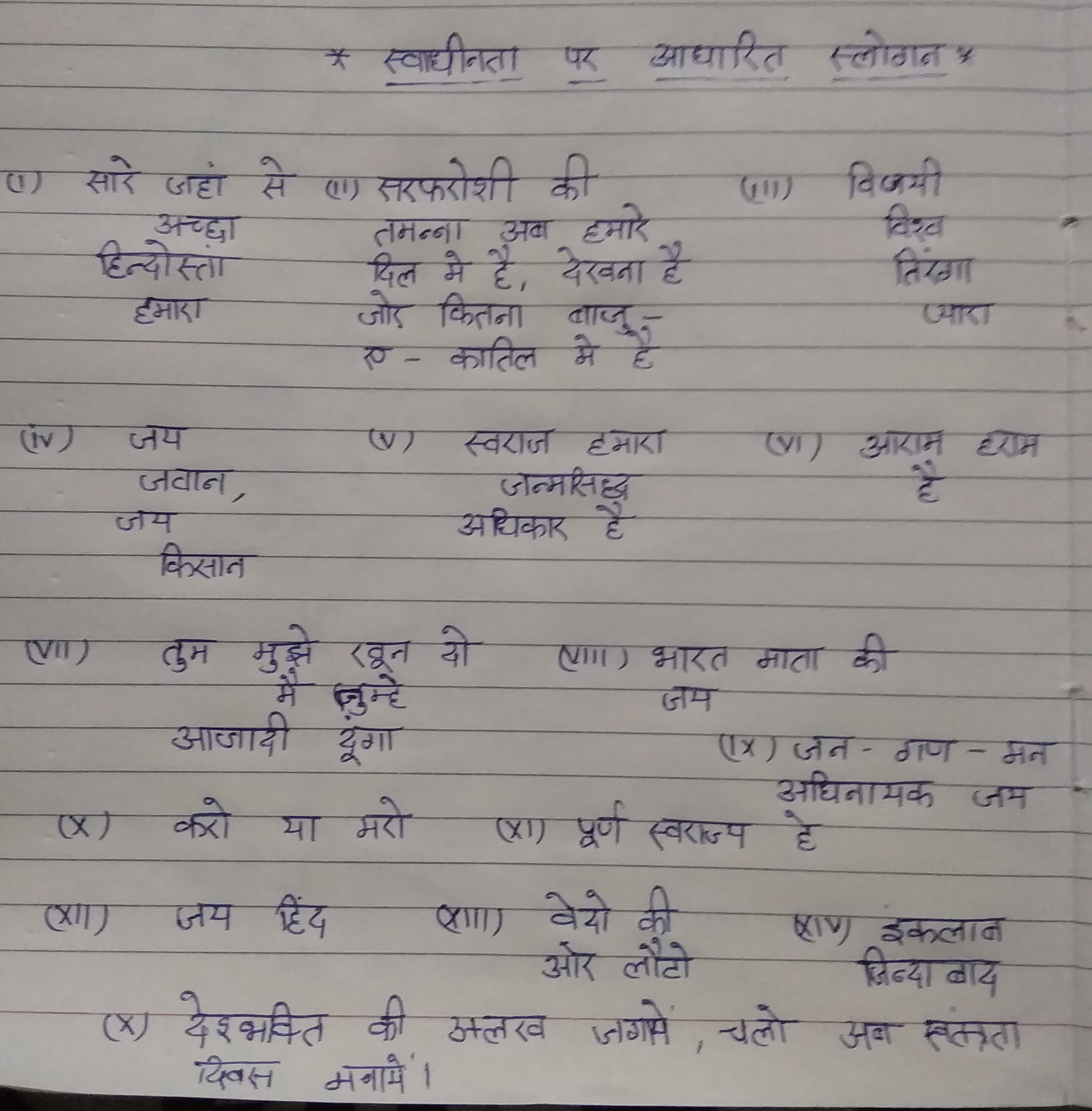 स्वाधीनता पर केन्द्रित प्रेरक स्लोगन लेखन प्रतियोगिता