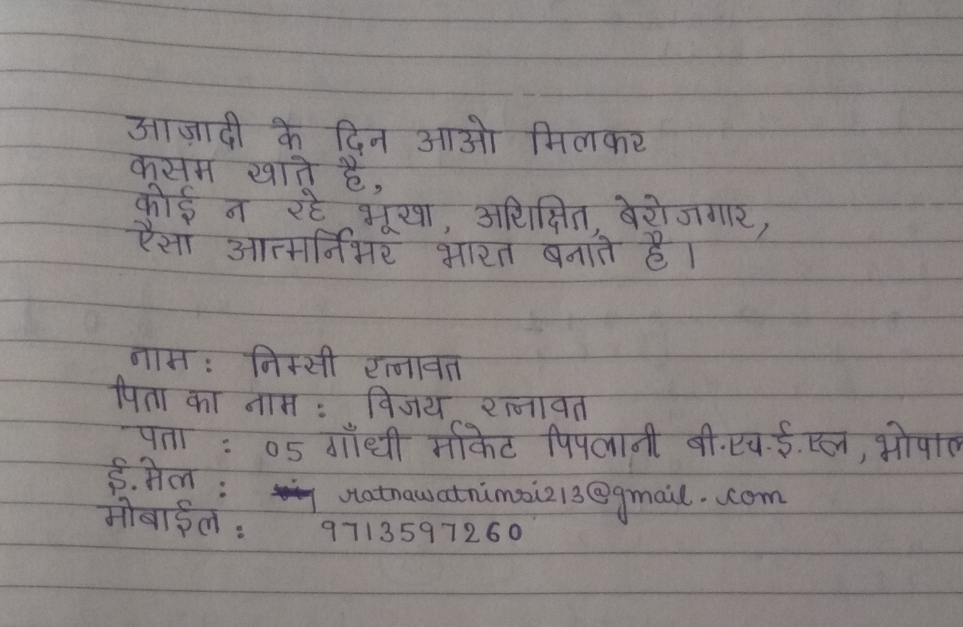 स्वाधीनता पर केन्द्रित प्रेरक स्लोगन लेखन प्रतियोगिता