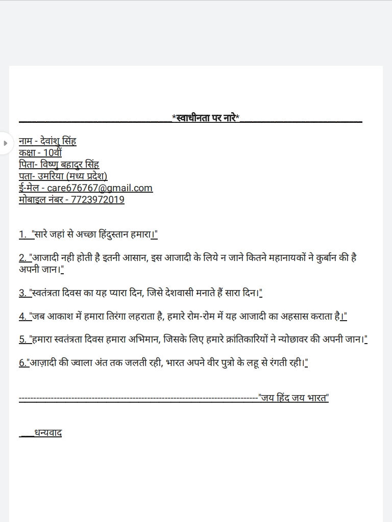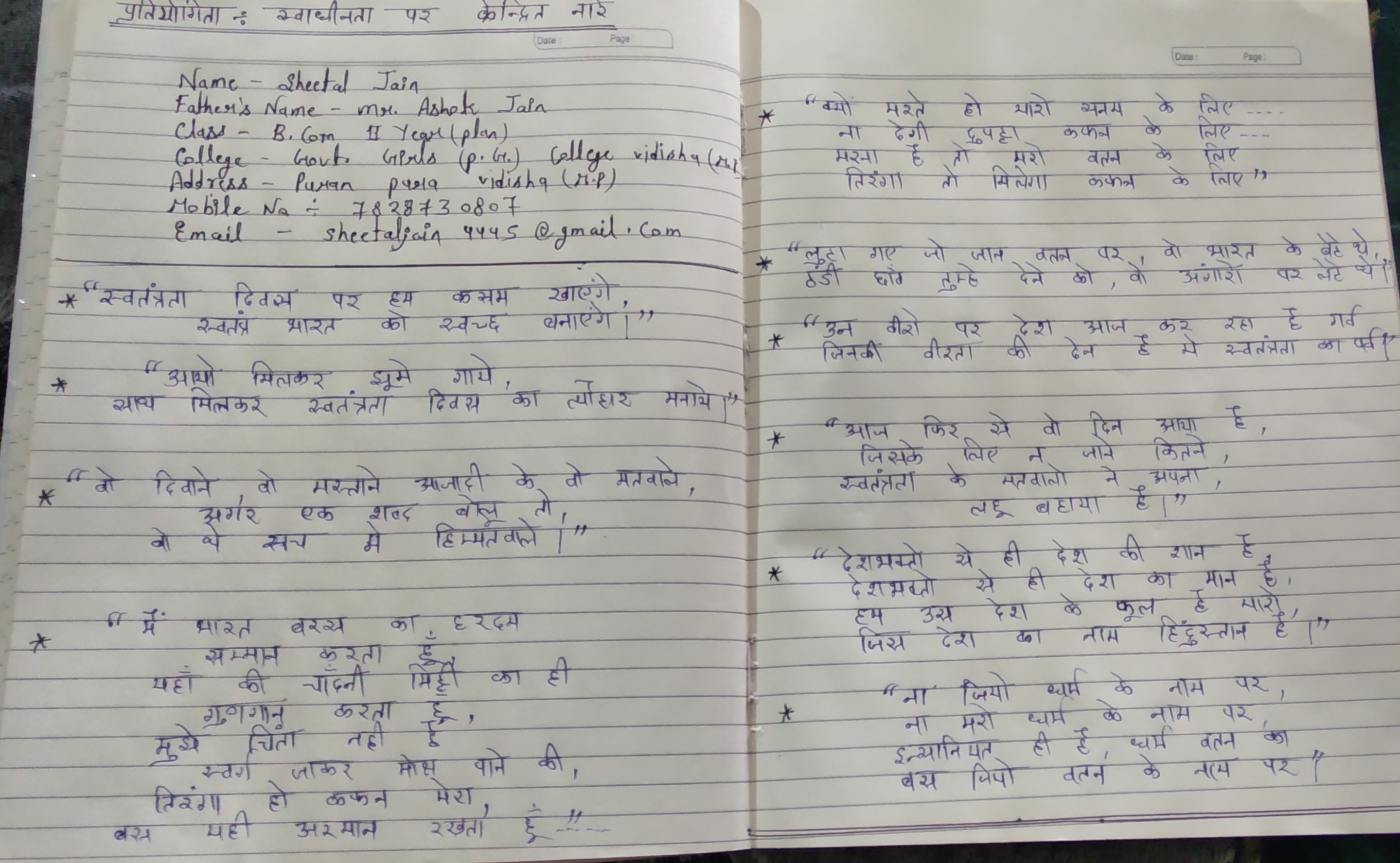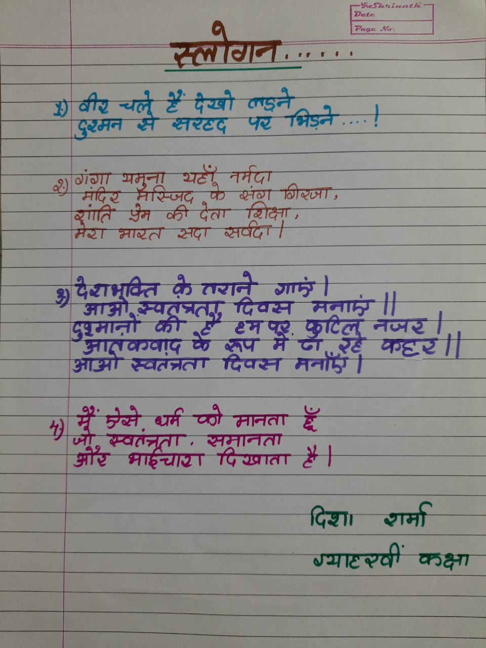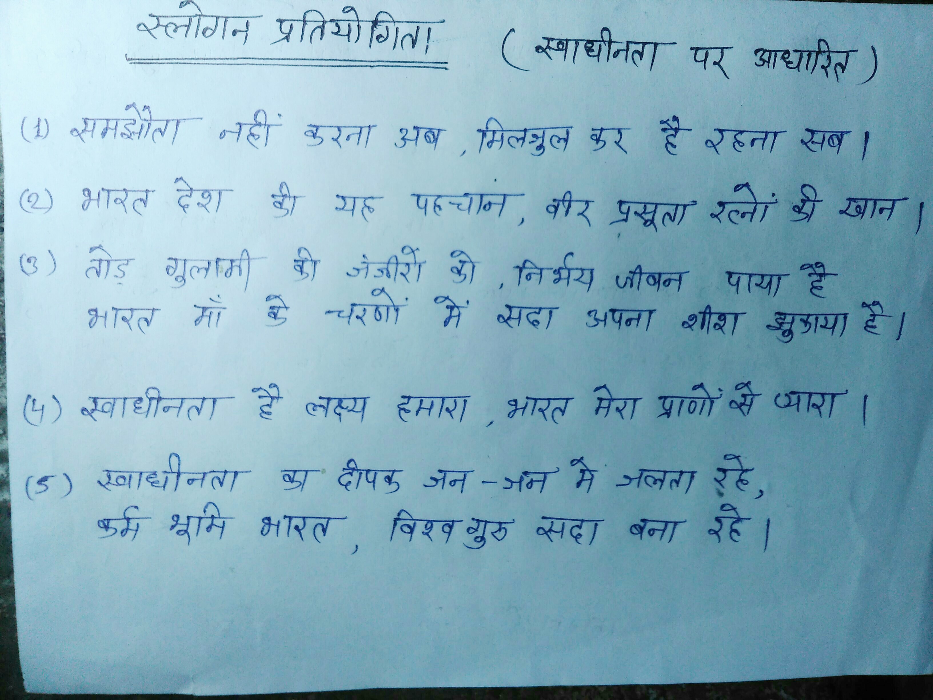 स्वाधीनता पर केन्द्रित प्रेरक स्लोगन लेखन प्रतियोगिता
