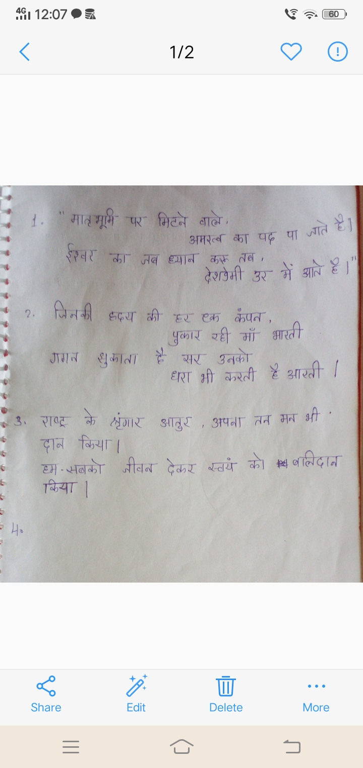 वीर जवान भोगौलिक कठिन विषमताओं के बीच अपनी जान पर खेलकर धरती माता की रक्षा करते है। जिससे हम सभी भारतवासी चैन से सोते है। वर्तमान समय मे प्रत्येक भारत वासी अपने भारतमाता की रक्षा के लिए तत्पर रहता है चाहे देश की सीमा हो या देश के अंदर। हर देशवासियों में देश के प्रति प्रेम, निष्ठा,आदर की भावना को जगाने वाले हमारे मान्यनीय प्रधानमंत्री जी है जिनके ओजस्वी भाषण से प्रत्येक भारतवासी को गर्व होता है।