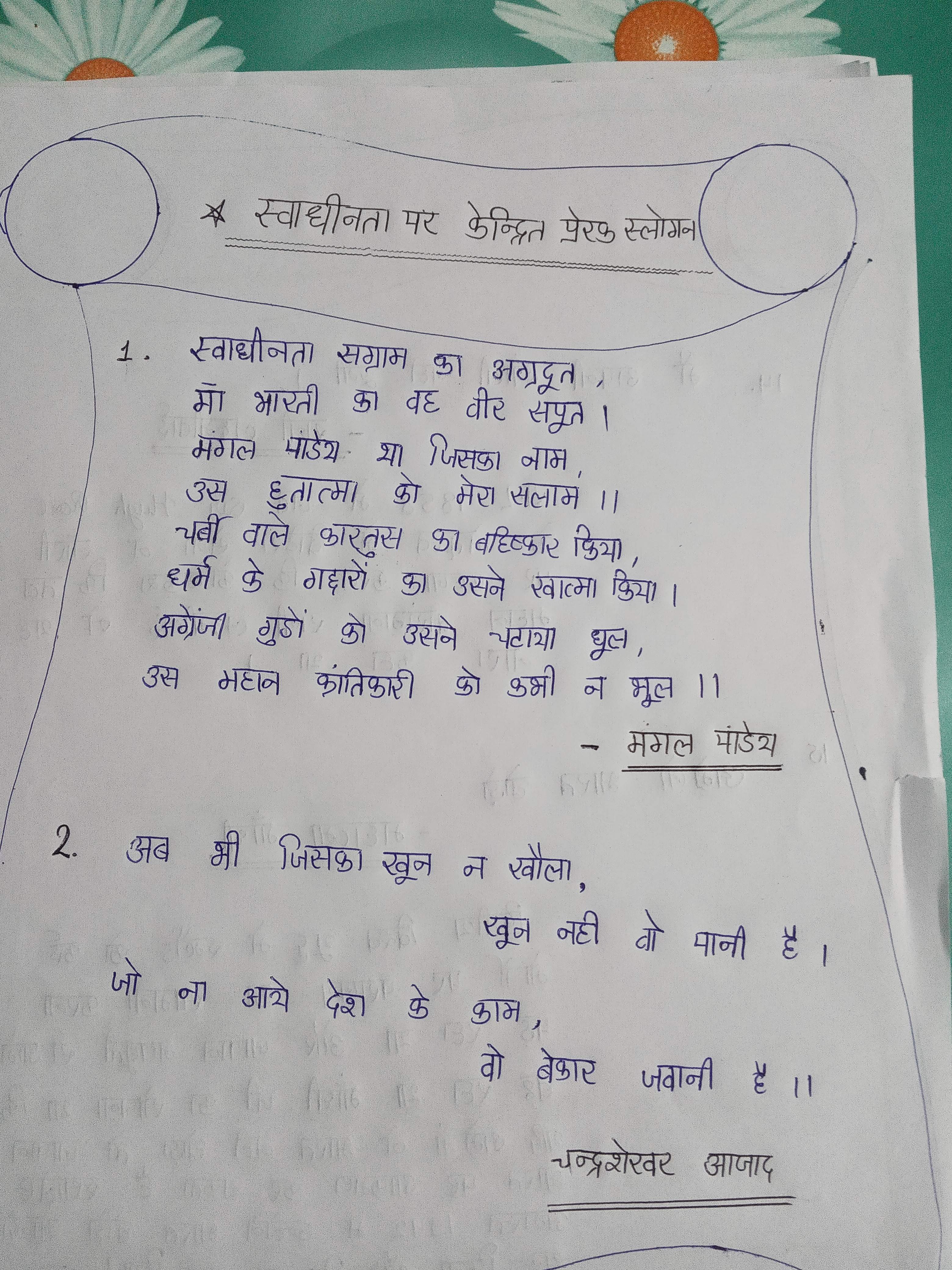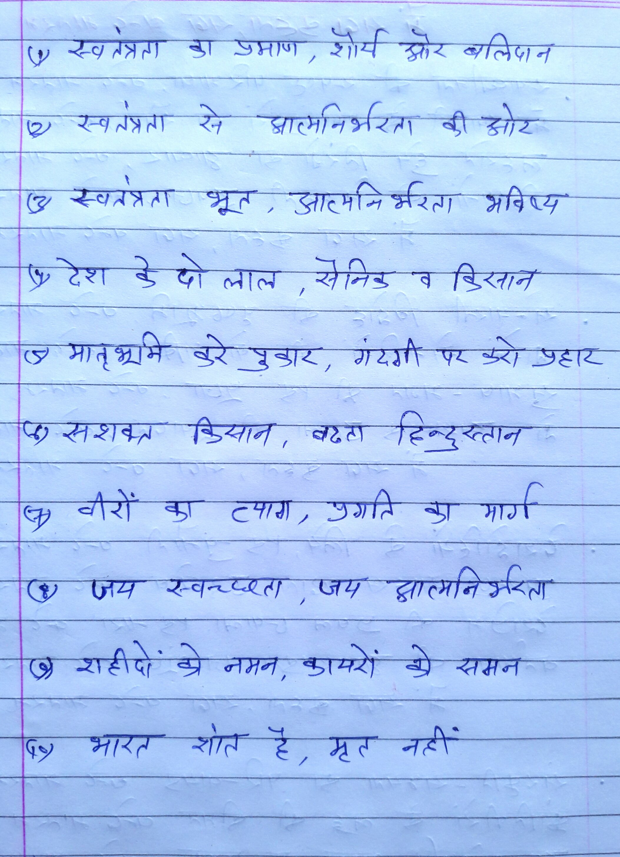 स्वाधीनता पर केन्द्रित प्रेरक स्लोगन लेखन प्रतियोगिता