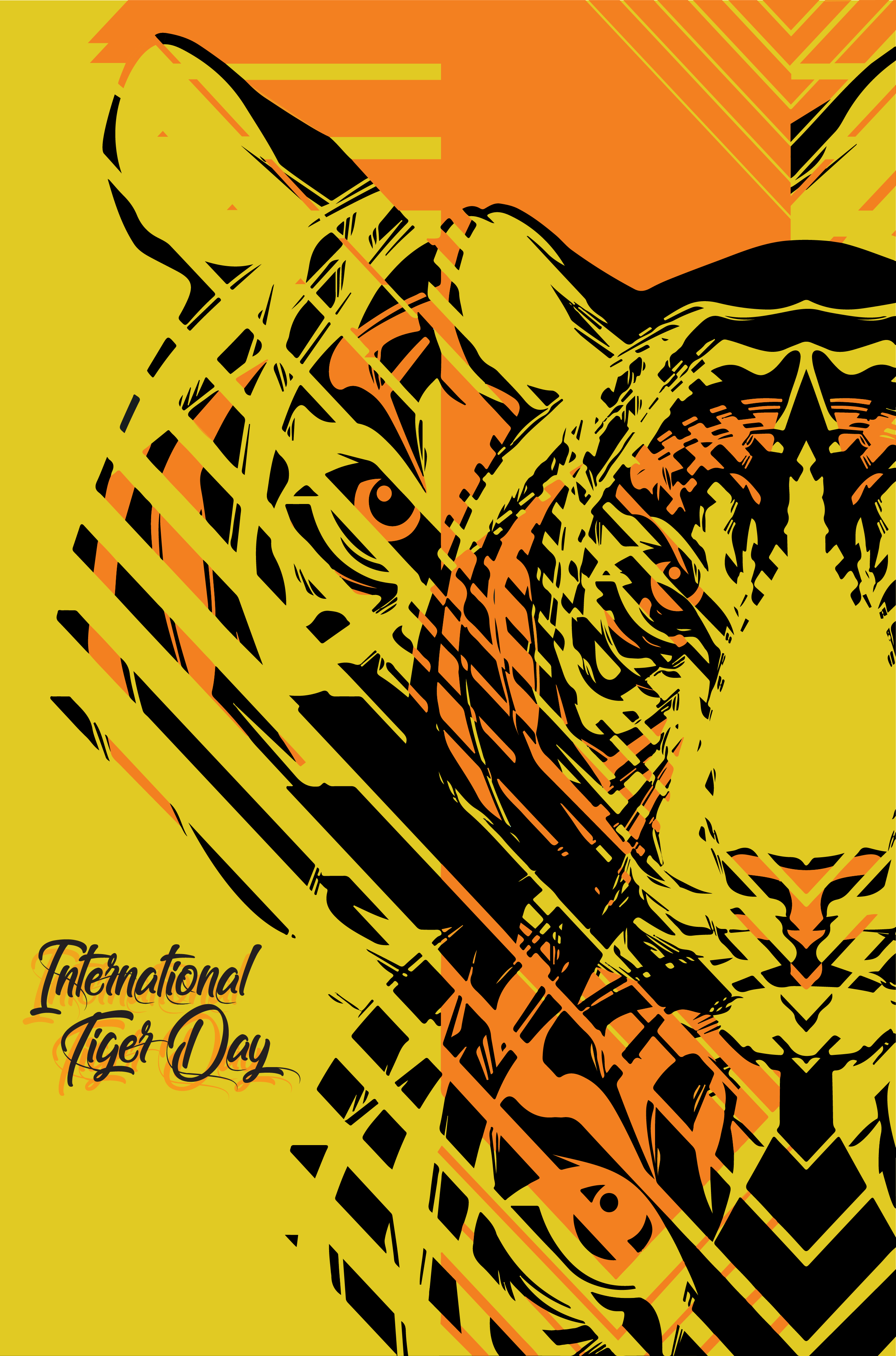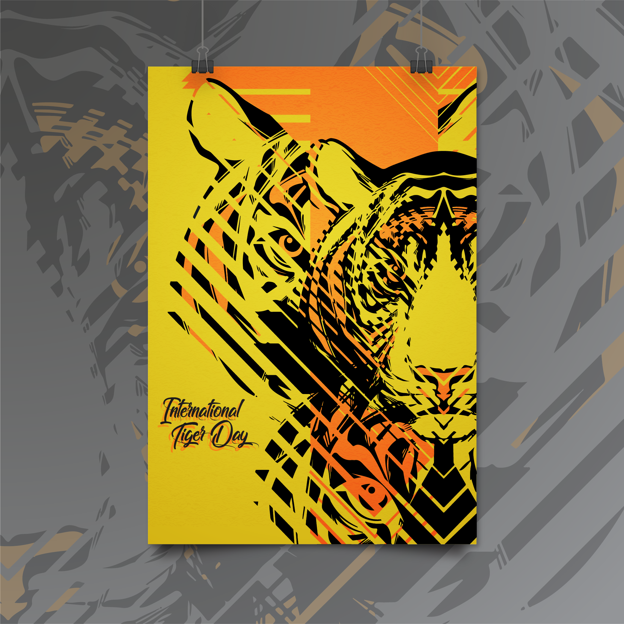 The poster consists of 3 partially completed images of tigers representing the endangered species. Geometric stripes are used instead of irregular stripes to give it an abstract look. The colour scheme used to make the poster are black, orange, and occur yellow i.e. the colour representing tiger and also these colours represent hope in Indian context.