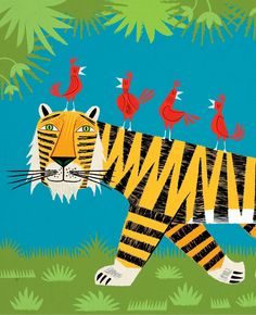 "Beautiful harsh" Birds over tiger indicates tigers are also part of nature and beautiful.Tigers also should be saved.