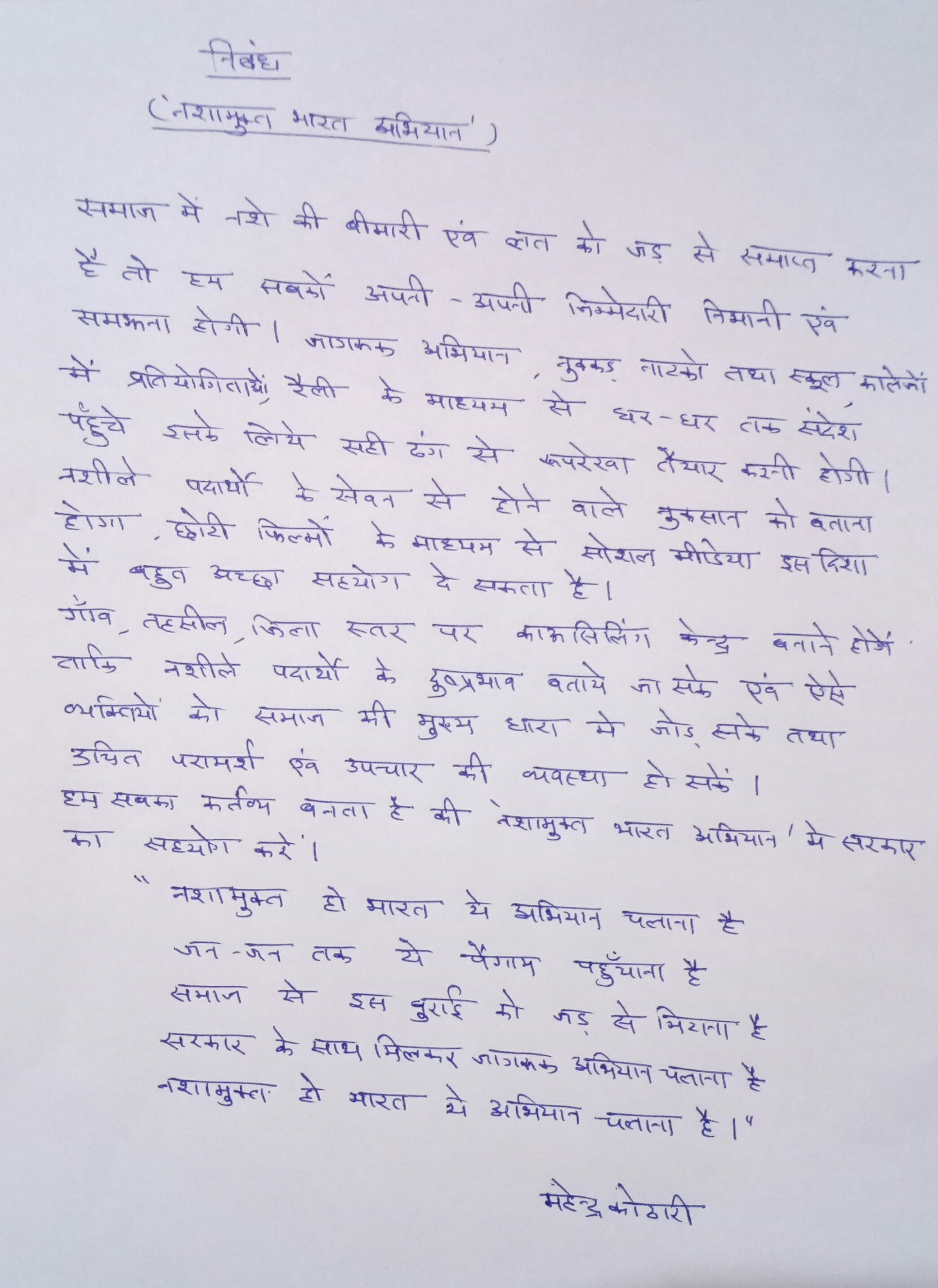 My Submission : NASHA MUKT ABHIYAN, ESSAY WRITING COMPETITION