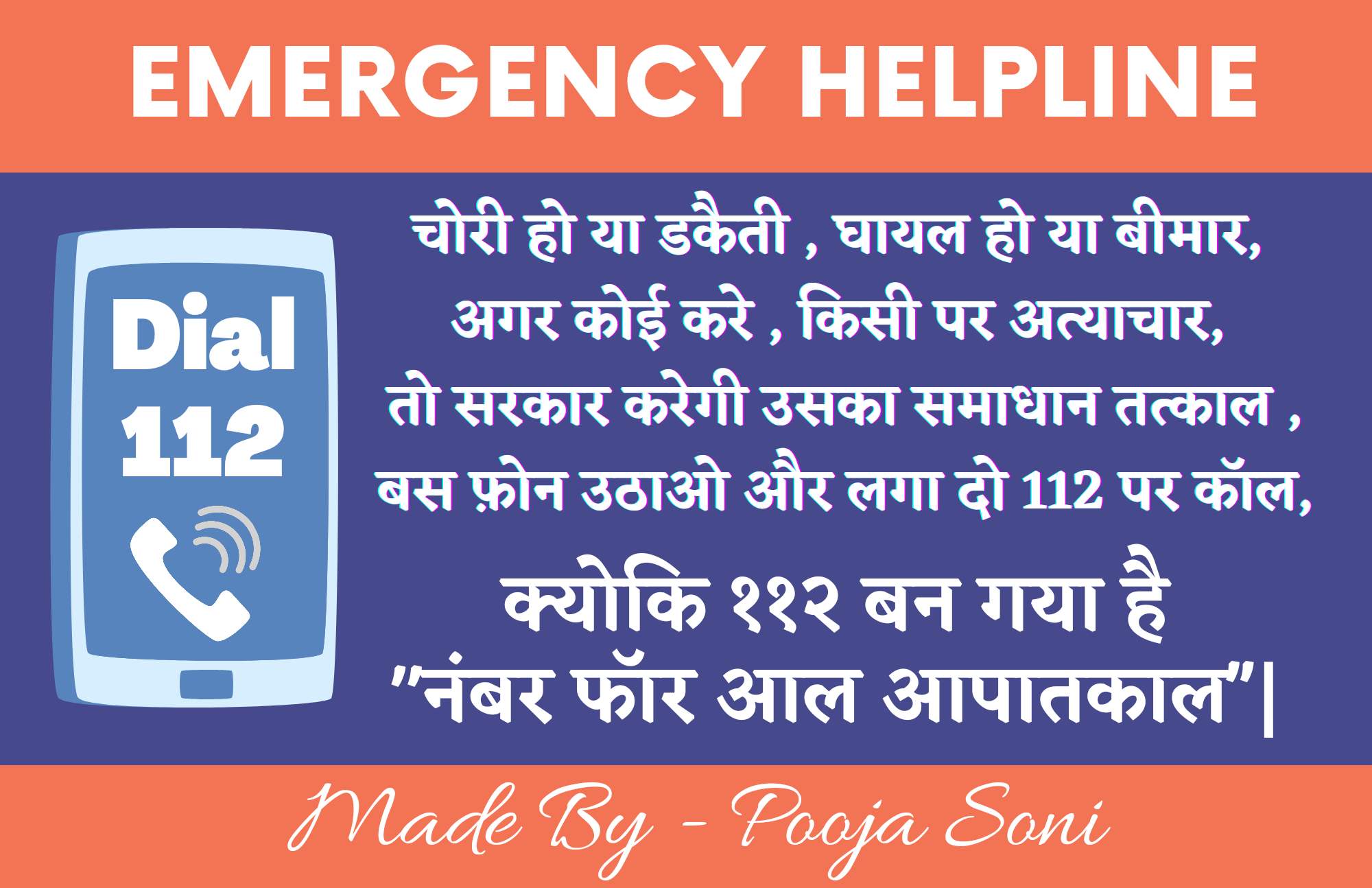 Topic - Slogan for Dial 112/100 in emergencies in both English and Hindi.