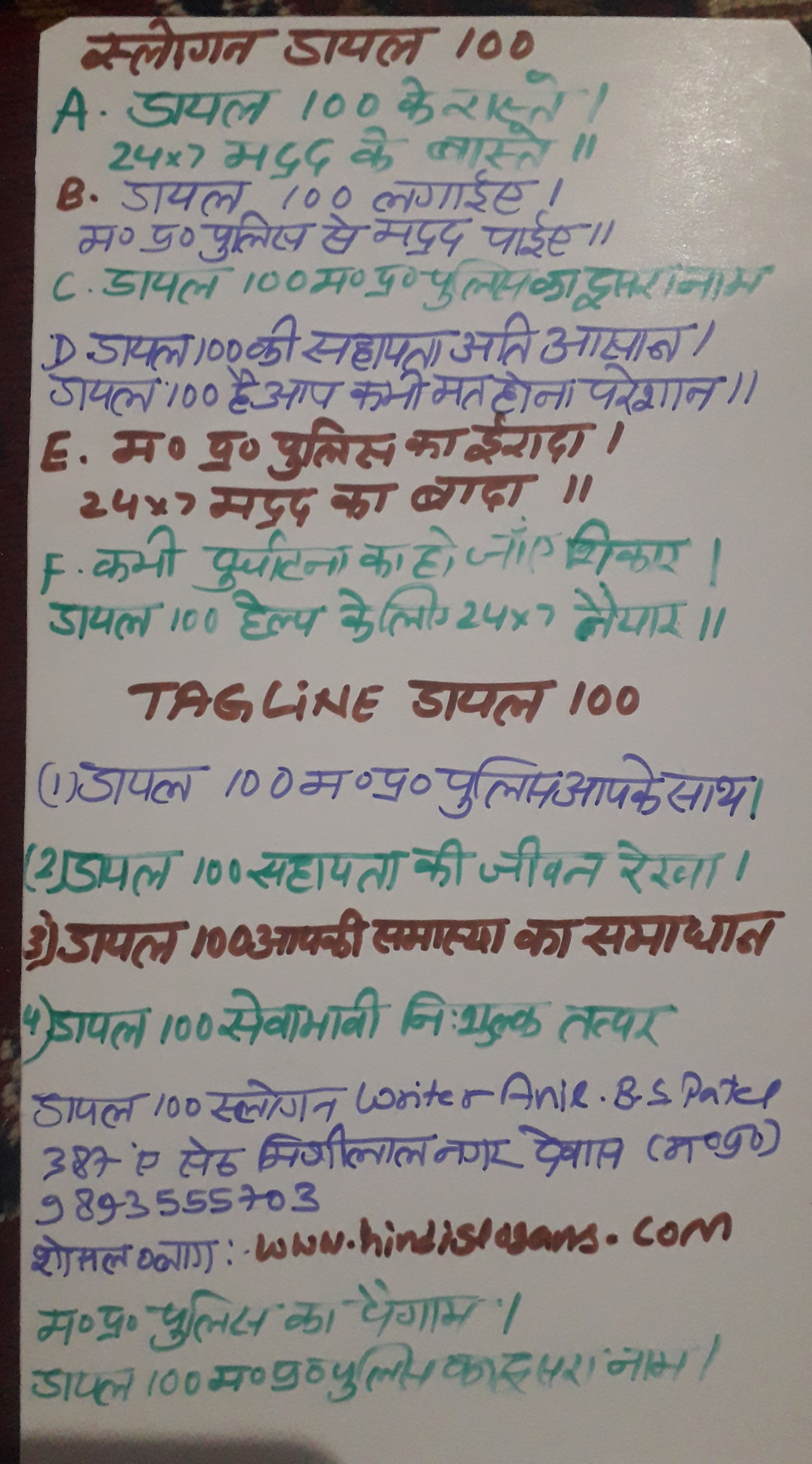 डायल 112/100 सेवा के लिए स्लोगन लेखन प्रतियोगिता
