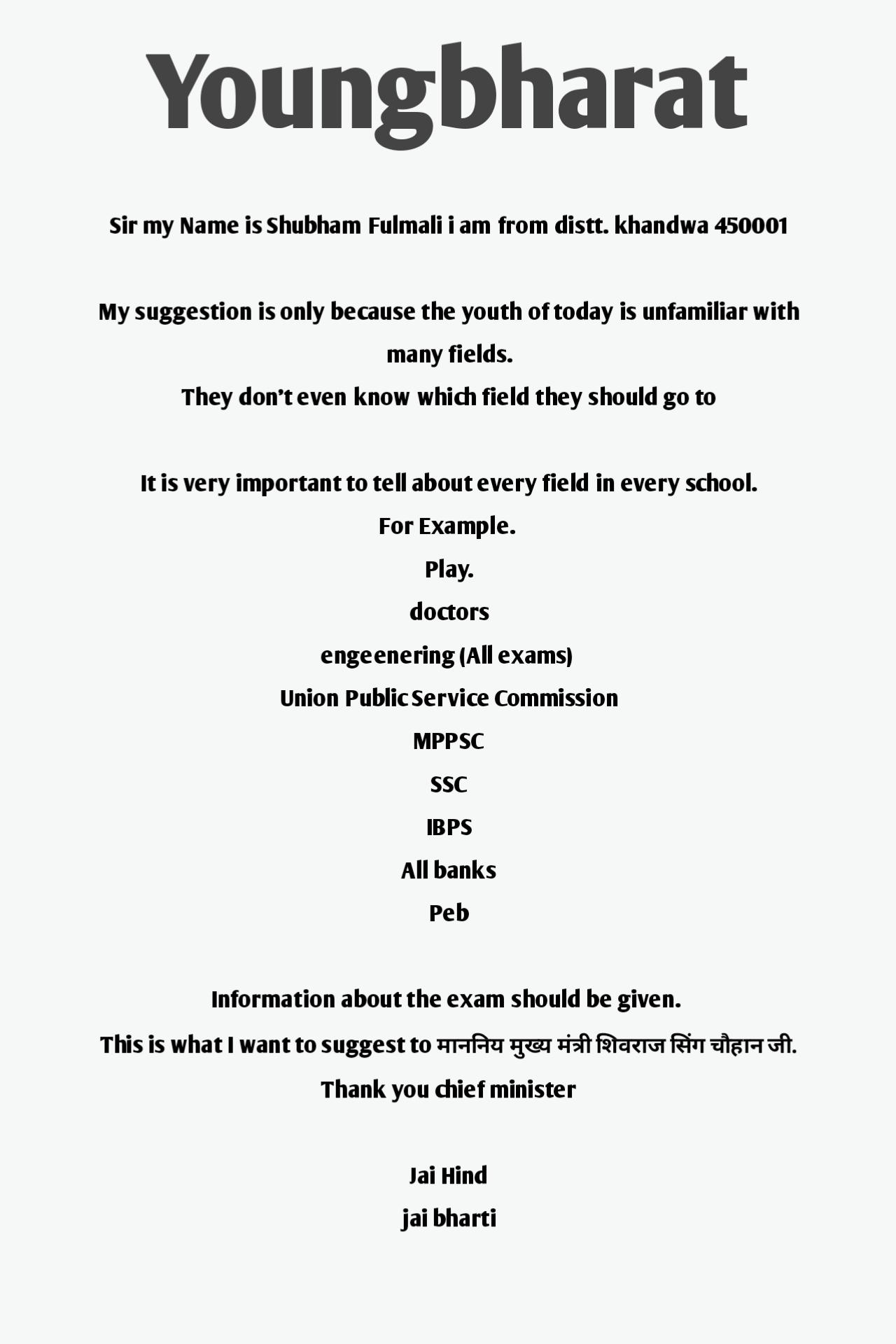 आप इसके लिए एक सरल, सार्थक और उद्देश्यपूर्ण नाम सुझाएं ताकि इसे जन-जन तक पहुंचाया जा सके।