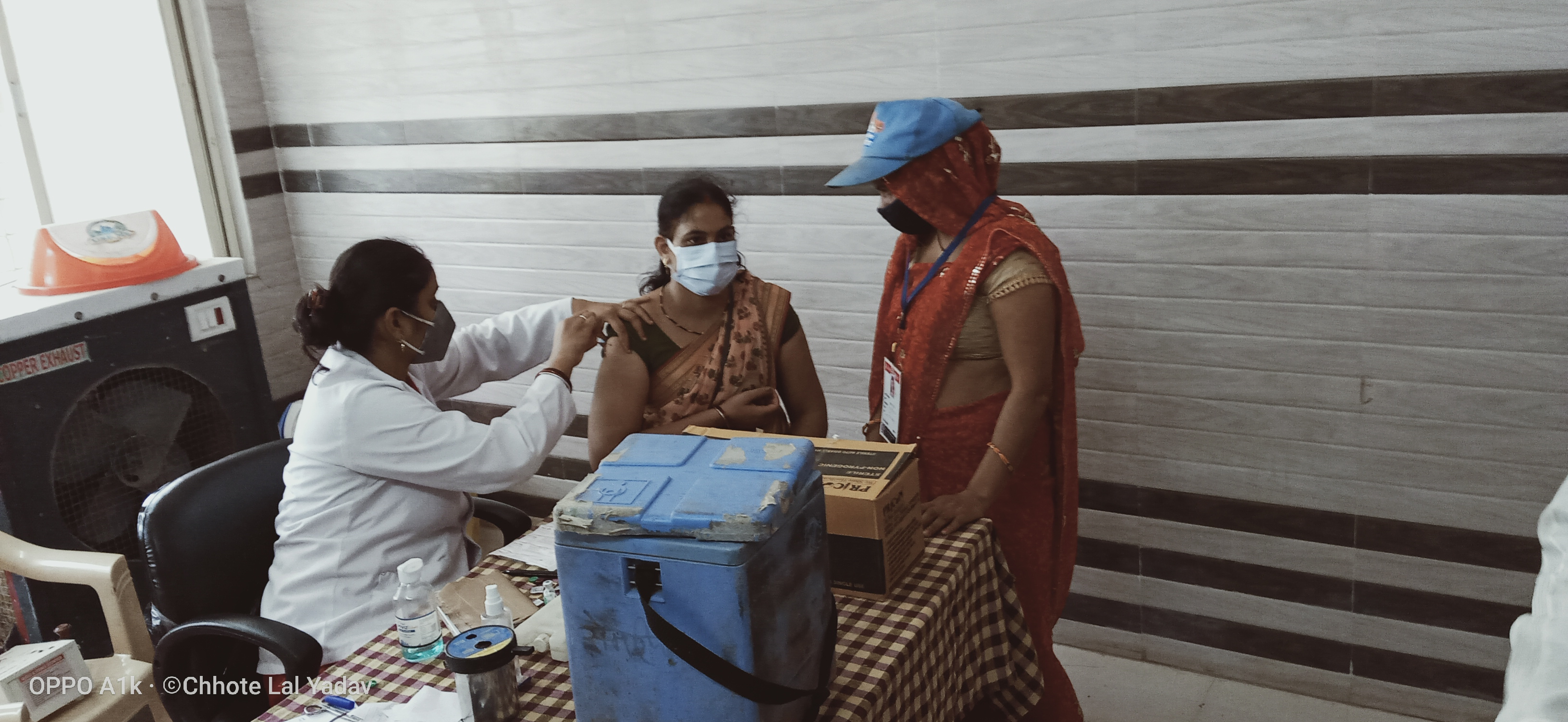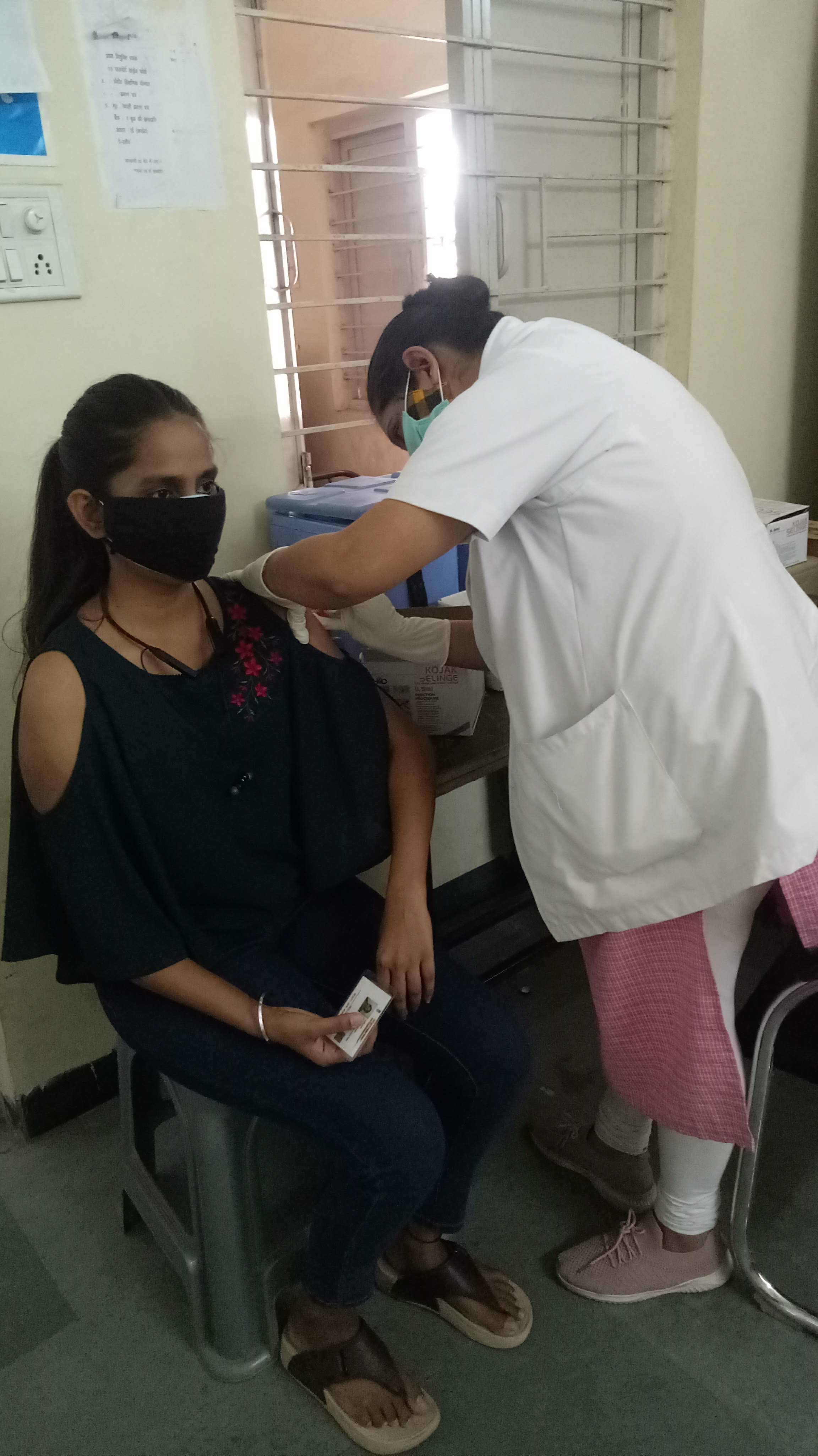 कोरोना वालिंटियर प्रतिमा सिंह जी टीकाकरण अभियान के दौरान उपस्थित रहे हितग्राहियों को वैक्सीन लगवाने में सहयोग किया