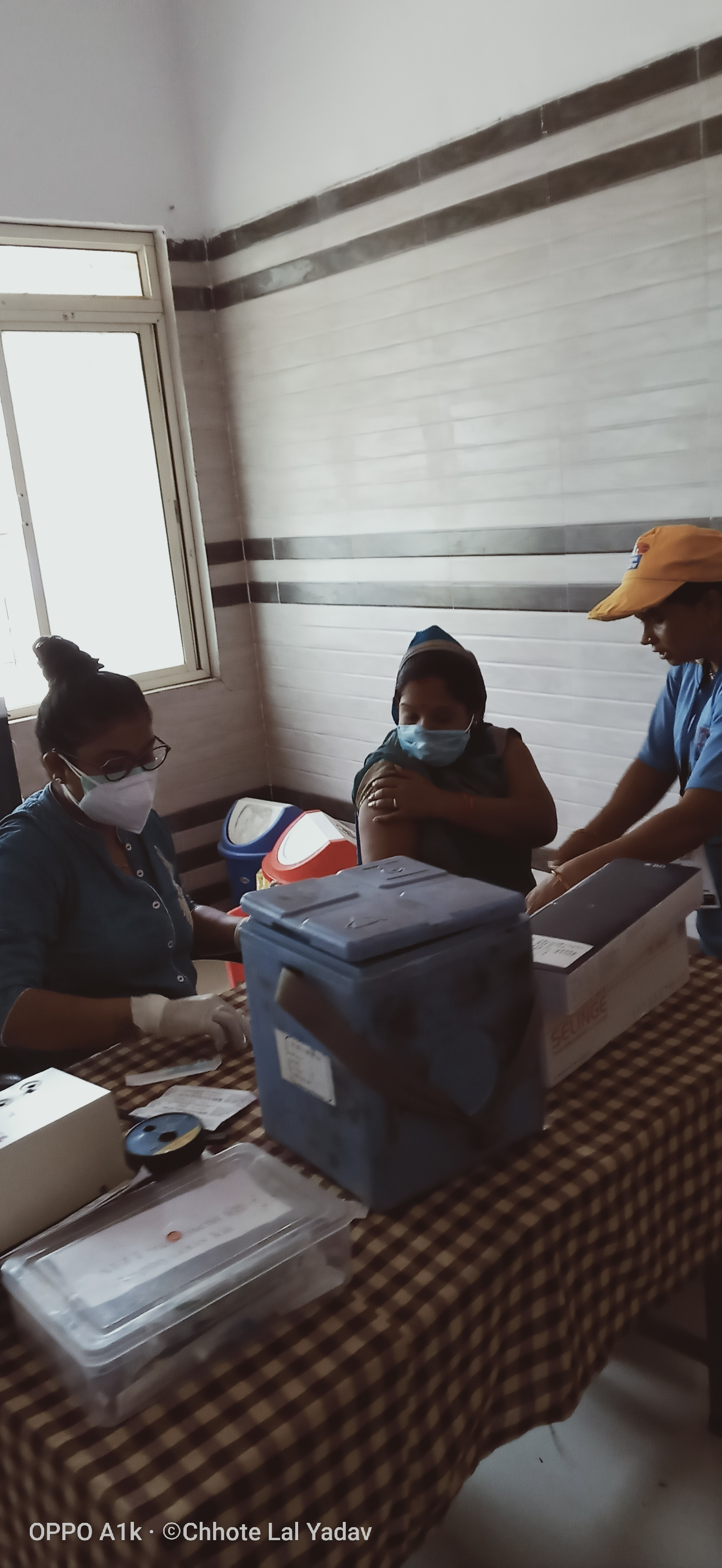 कोरोना वालिंटियर प्रतिमा सिंह गुरु भारती प्राथमिक स्वास्थ्य केंद्र डिहिया में टीकाकरण अभियान के दौरान सहयोग करती हुई नजर आ रही हैं